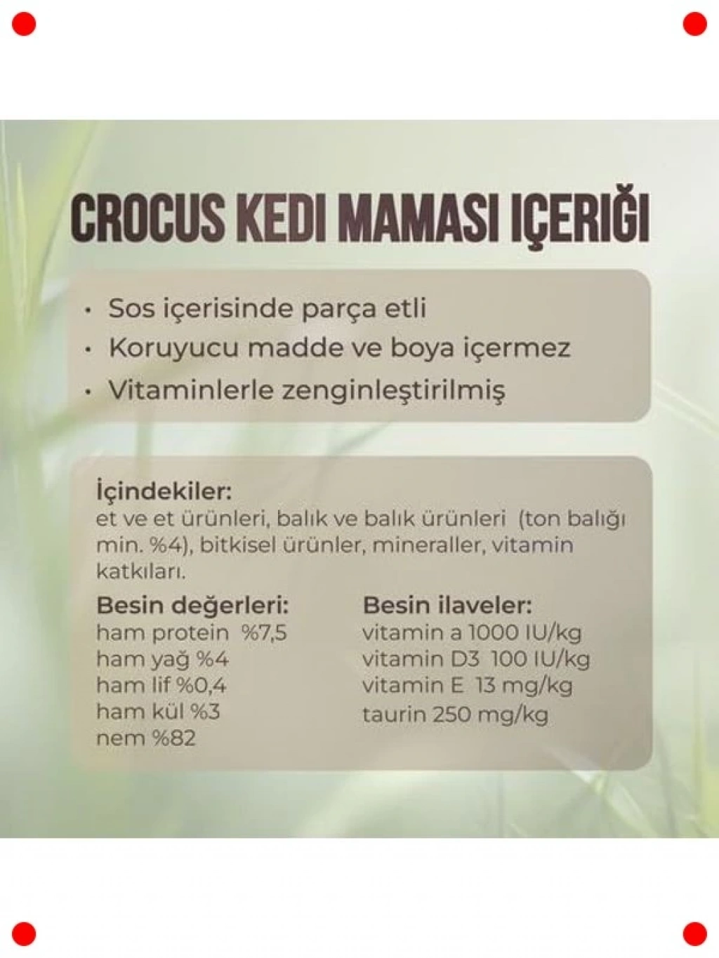 Yetişkin kedilerinizin damak zevkine uygun, balık aromalı, lezzetli ve besleyici yaş mama. 400 gramlık teneke kutusu, kedinizin günlük besin ihtiyacını karşılamak için ideal bir porsiyon sunar. Yüksek kaliteli balık proteinleri ile kas gelişimini destekler ve kedinizin enerjik kalmasını sağlar. Yüksek nem içeriği sayesinde kedinizin yeterli sıvı alımına katkıda bulunur, bu da idrar yolları sağlığı için önemlidir. Esansiyel vitaminler ve mineraller ile zenginleştirilmiş olup, kedinizin bağışıklık sistemini güçlendirir ve parlak tüyler için temel besinleri sağlar. Eksiksiz ve dengeli bir öğün sunar.