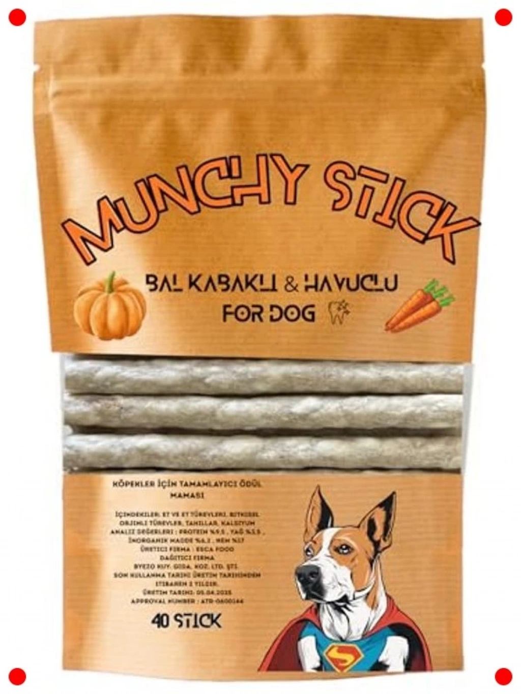 Köpeğinizin bayılacağı, doğal balkabağı ve havuç aromalı, lezzetli ve sağlıklı ödül çiğneme çubukları. 40 adetlik maxi paketiyle uzun süreli kullanım ve ekonomik bir çözüm sunar. Bu çubuklar, köpeğinizin diş ve diş eti sağlığını desteklerken, çiğneme ihtiyacını güvenli bir şekilde karşılar. Doğal içerikleri sayesinde sindirimi kolaydır ve besleyici bir atıştırmalık görevi görür. Eğitim ve ödüllendirme anlarında motivasyonu artırır, köpeğinizin mutlu ve meşgul kalmasını sağlar. Sağlıklı ve lezzetli bir seçenektir.