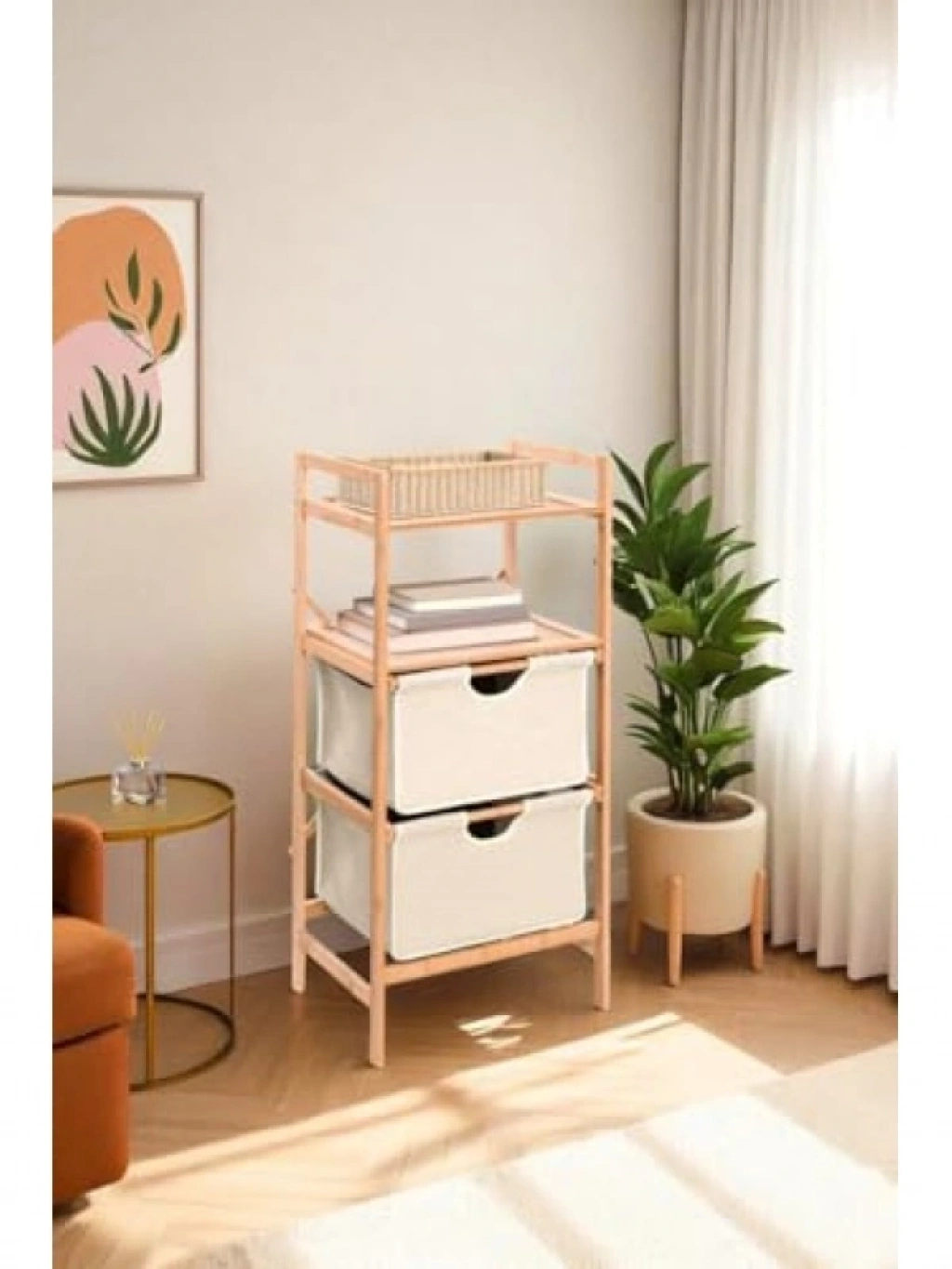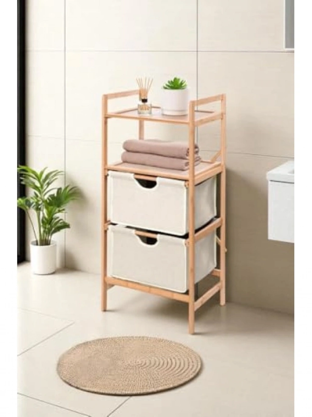 Bu şık ve fonksiyonel banyo düzenleyici dolap, bambu malzemeden üretilmiştir. İki raf ve iki çekmece ile tasarlanan bu ürün, banyonuzda yer kazanmanızı sağlarken düzeni de korur. Çekmeceleri, küçük eşyalarınızı saklamak için idealdir. Modern tasarımı ile her banyo dekoruna uyum sağlar.