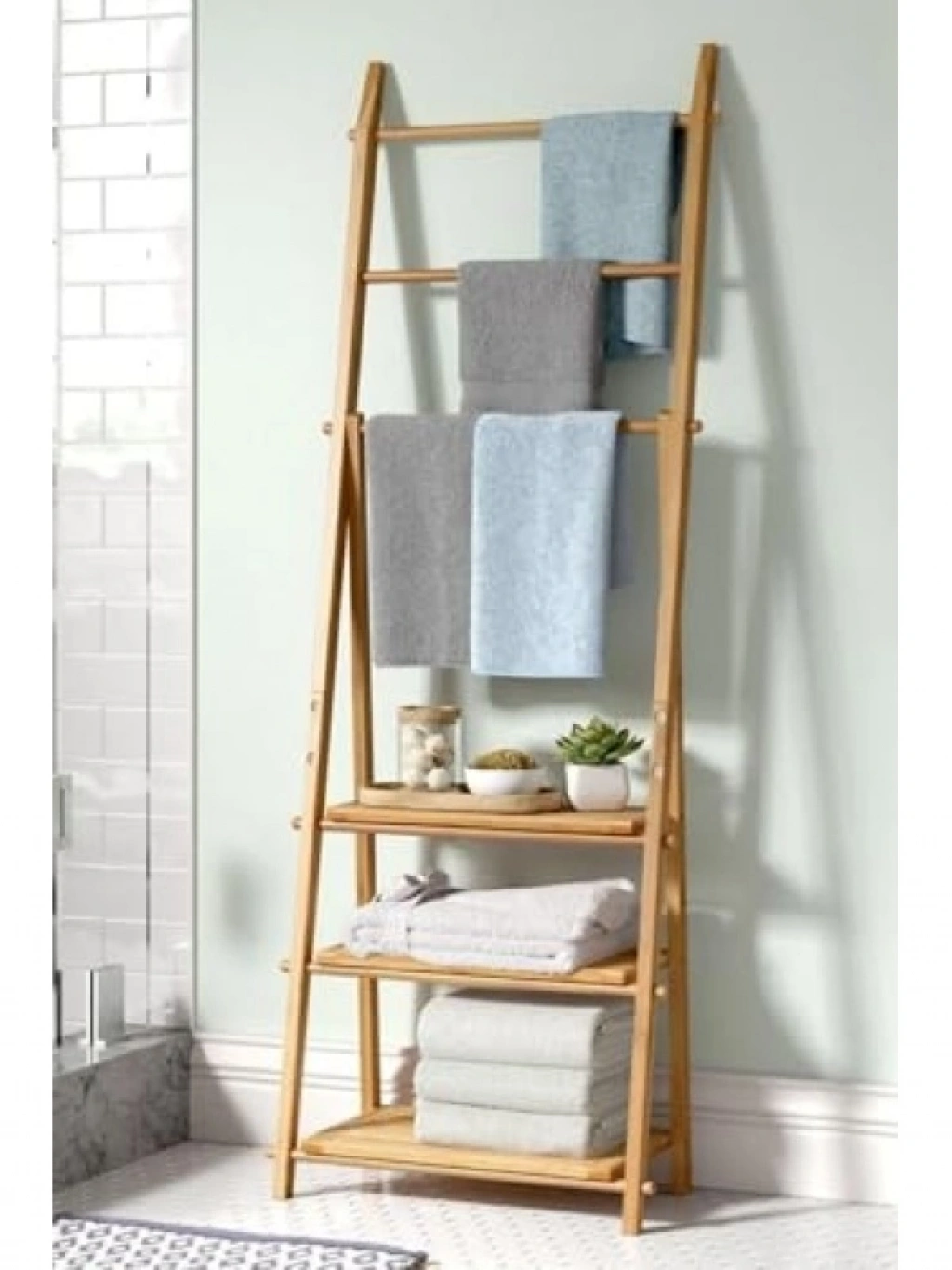 Bambudan üretilmiş 3 raflı havlu askısı, banyo düzeninizi sağlamak için mükemmel bir çözümdür. Hafif ve dayanıklı yapısı ile banyo alanında yer kaplamaz. Farklı boyutlardaki havlularınızı düzenli bir şekilde yerleştirmenizi sağlar. Estetik görünümüyle banyonuzun dekorasyonuna da katkıda bulunur. Suya dayanıklı ve kolay temizlenebilir özellikleri ile hijyenik bir kullanım sunar.