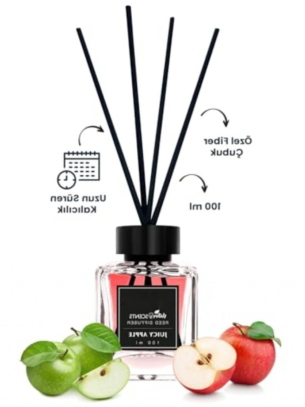 Bambu çubukları ile birlikte sunulan bu oda kokusu, elma kokusuyla mekanlarınıza ferahlık katar. Uzun süre kalıcı etkisi sayesinde evinizde hoş bir atmosfer yaratır. Doğal malzemelerden üretilmiş olan bu ürün, sağlıklı bir ortam sağlamak için idealdir. Estetik tasarımı ile dekoratif bir öğe olarak da kullanılabilir.