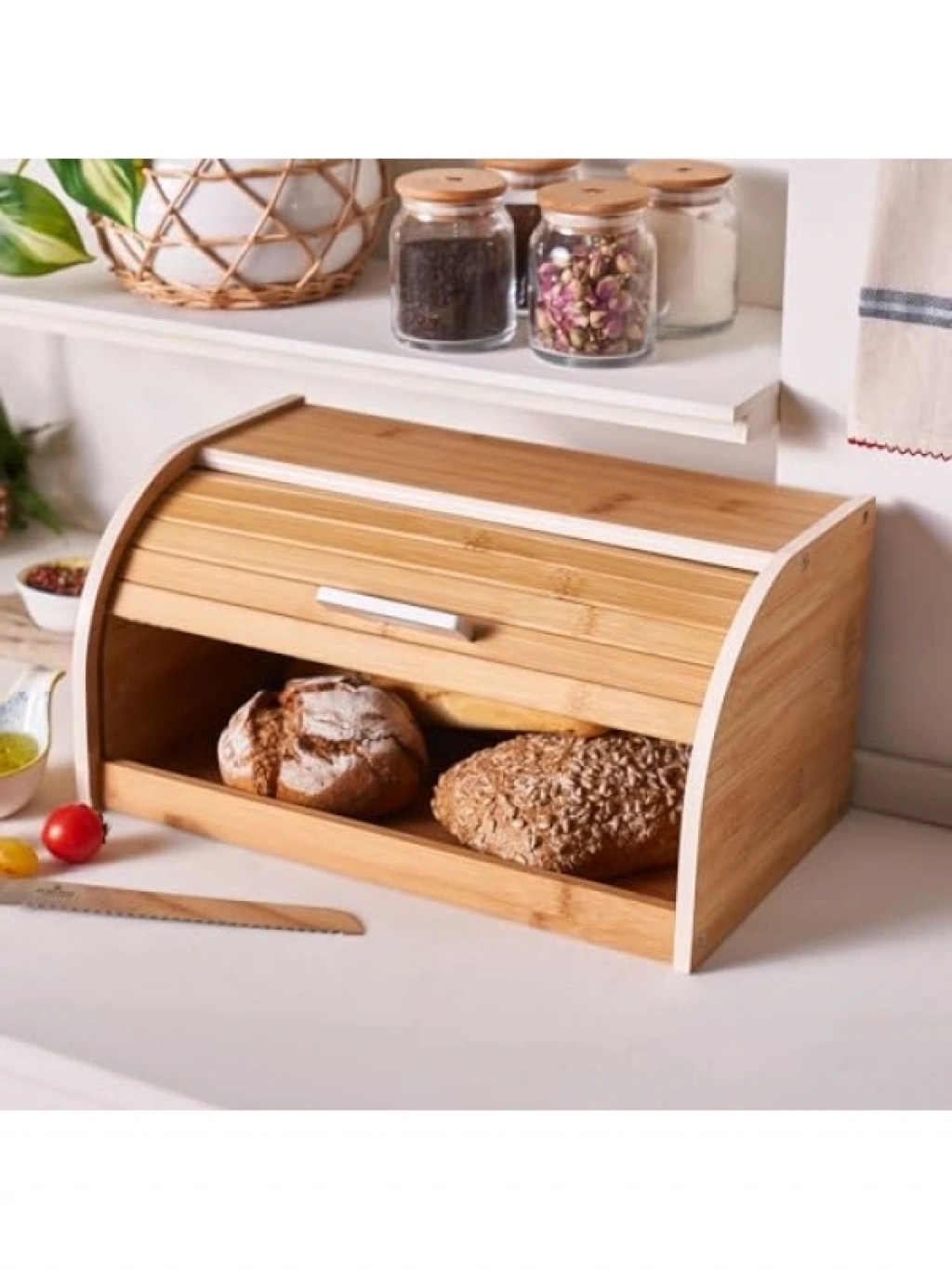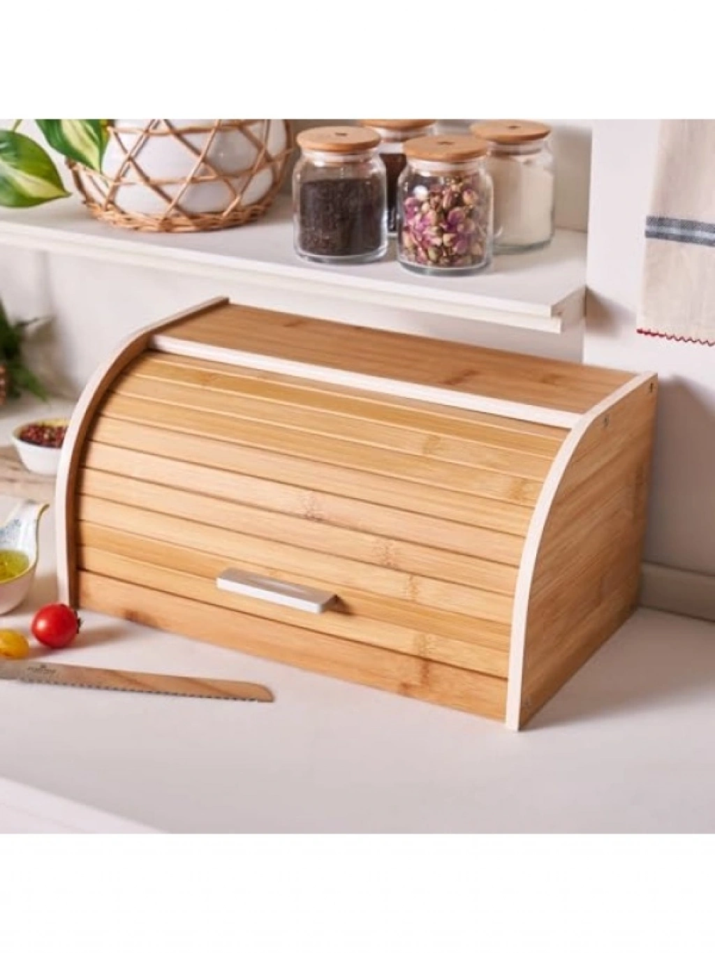 Doğal bambu malzemeden üretilen bu ekmek kutusu, 38,5 x 23 x 19,5 cm ölçüleriyle geniş bir depolama alanı sunar. Metal kulpu sayesinde rahatça açılıp kapanabilen kutu, sürgülü kapak özelliği ile kullanımı kolaylaştırır. Kenar kısımlarındaki pembemsi renkler, mutfak dekorunuza şıklık katarken, ekmeklerinizi taze ve güvenli bir şekilde saklamanızı sağlar. Hem fonksiyonel hem de estetik bir çözüm arayanlar için ideal bir üründür.