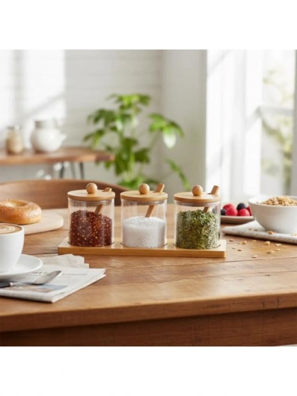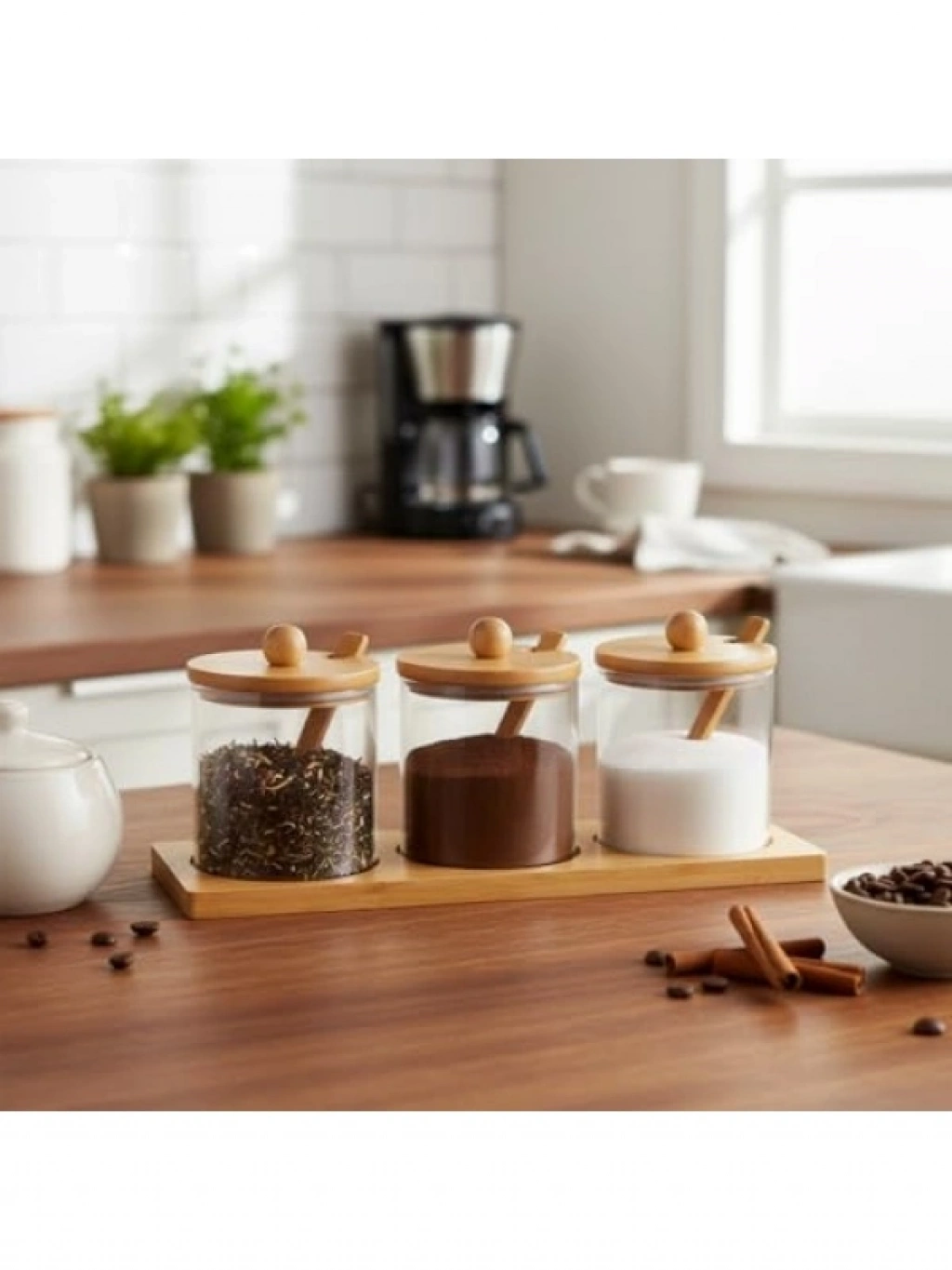Şık ve fonksiyonel bir tasarıma sahip bambu standlı 3'lü cam baharatlık seti, mutfakta düzeni sağlarken baharatlarınızın tazeliğini korumaya yardımcı olur. Borosilikat camdan üretilmiş baharatlıklar, çizilmeye dayanıklıdır ve kolayca temizlenebilir. Hava geçirmez kapakları sayesinde baharatlarınızın aroması uzun süre korunur. Mutfak dekorunuza uyum sağlayan bu set, hem evde hem de profesyonel mutfaklarda kullanıma uygundur.