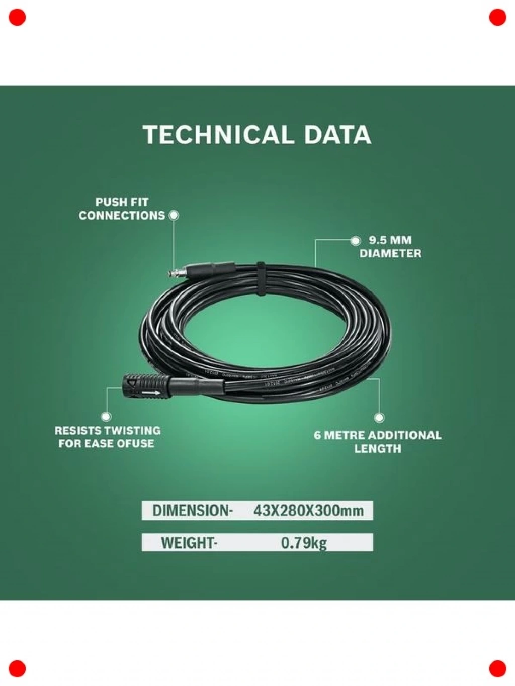 Yüksek basınçlı yıkama makinenizin menzilini artırın ve ulaşılması zor alanları bile kolayca temizleyin. 6 metre uzunluğundaki bu dayanıklı uzatma hortumu, teraslar, araçlar veya bahçe mobilyaları gibi geniş yüzeylerde çalışma özgürlüğü sunar. 135 bara kadar basınca dayanıklı yapısıyla güvenli ve etkili bir temizlik deneyimi sağlar. Kolay takılıp çıkarılabilir tasarımı sayesinde hızlıca kullanıma hazır hale gelir. Yüksek kaliteli malzemeden üretilmiş olup uzun ömürlü kullanım vaat eder. Temizlik işlerinizi daha pratik ve konforlu hale getiren ideal bir aksesuardır.