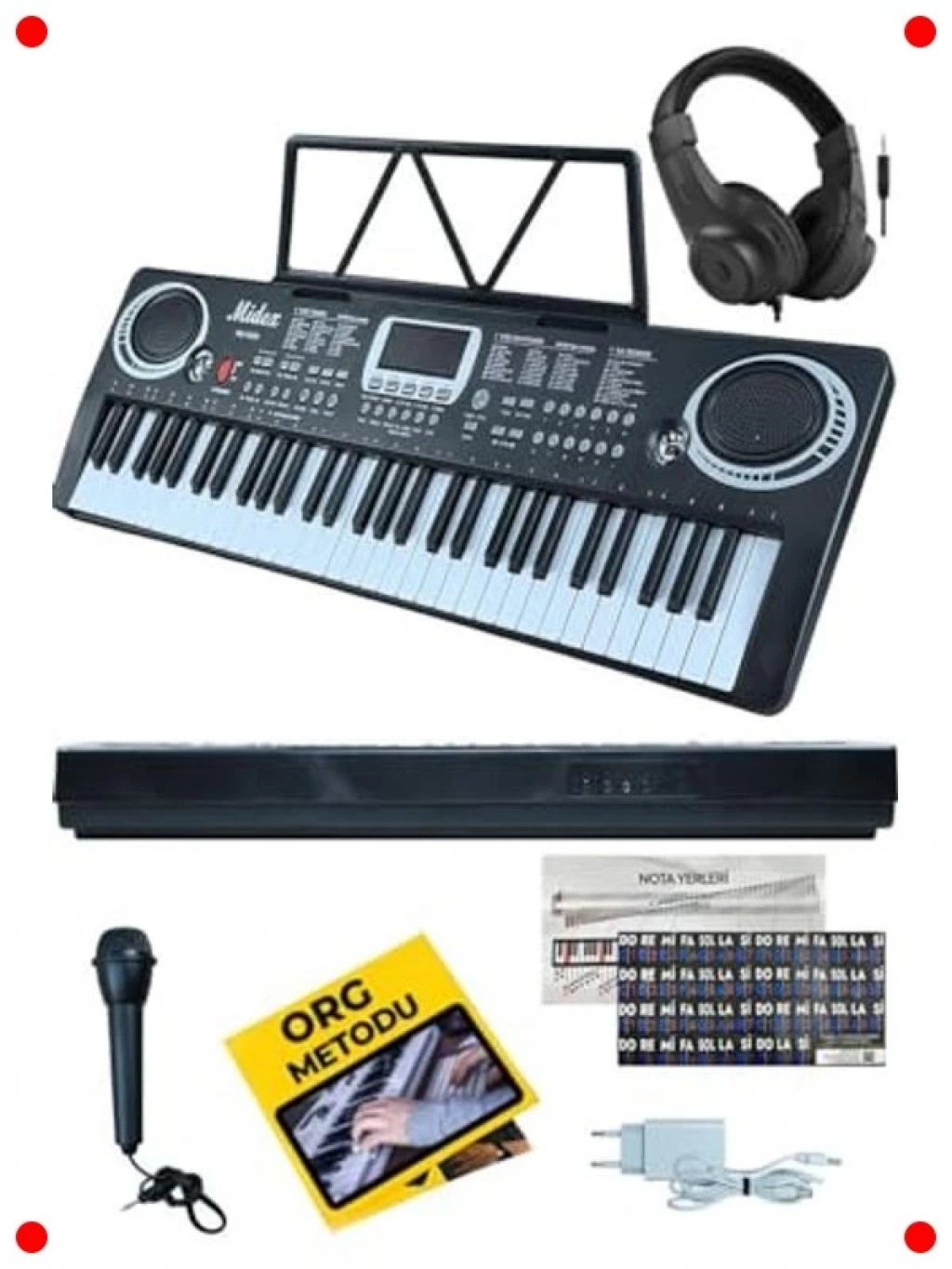 Müzik öğrenme yolculuğunuza eğlenceli ve kapsamlı bir başlangıç yapmak için tasarlanmış bu 61 tuşlu org seti ile müziğin büyülü dünyasına adım atın. 100 farklı ses ve 100 ritim seçeneği, çeşitli müzik tarzlarını keşfetmenize ve yaratıcılığınızı geliştirmenize olanak tanır. Kutuya dahil olan kulaklık sayesinde başkalarını rahatsız etmeden pratik yapabilir, notalık ile doğru pozisyonu kolayca takip edebilirsiniz. Adaptörü sayesinde güç kaynağı endişesi yaşamazsınız. Kullanıcı dostu arayüzü, hem çocuklar hem de yetişkinler için öğrenmeyi kolaylaştırır. İlk melodilerinizi çalmaya başlamak için ihtiyacınız olan her şey bu sette.