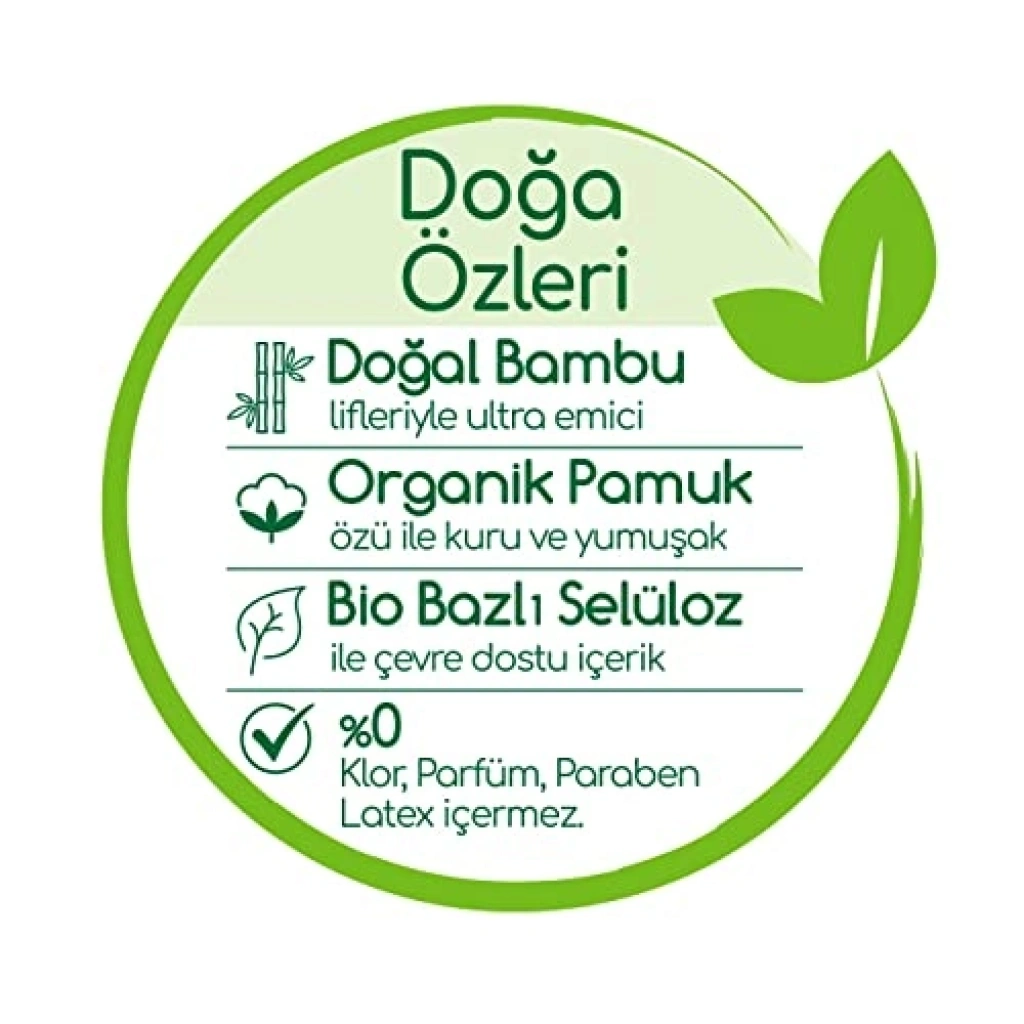 3. beden, 34 adet içeren bebek bezleri, doğal bambu özü ile yüksek emicilik sunarak bebeklerinizi kuru tutar. Üst yüzeydeki organik pamuk özü ile yumuşak ve konforlu bir deneyim sağlar. Sürdürülebilir kaynaklardan elde edilen bio bazlı selüloz ile çevre dostu bir seçenek sunarken, zararlı kimyasallar içermez.