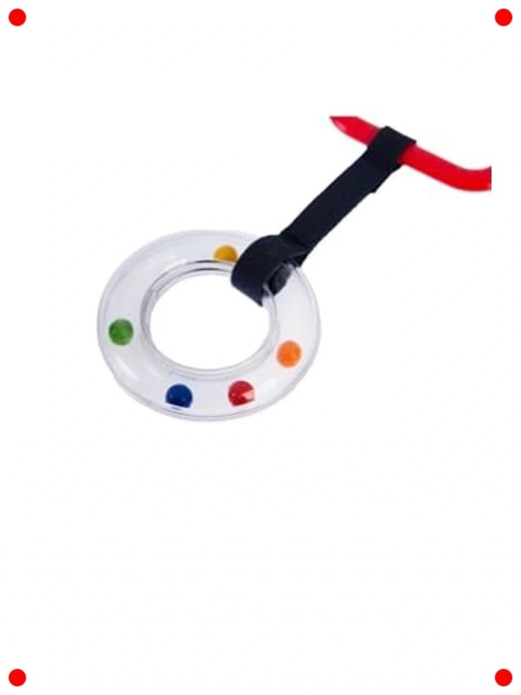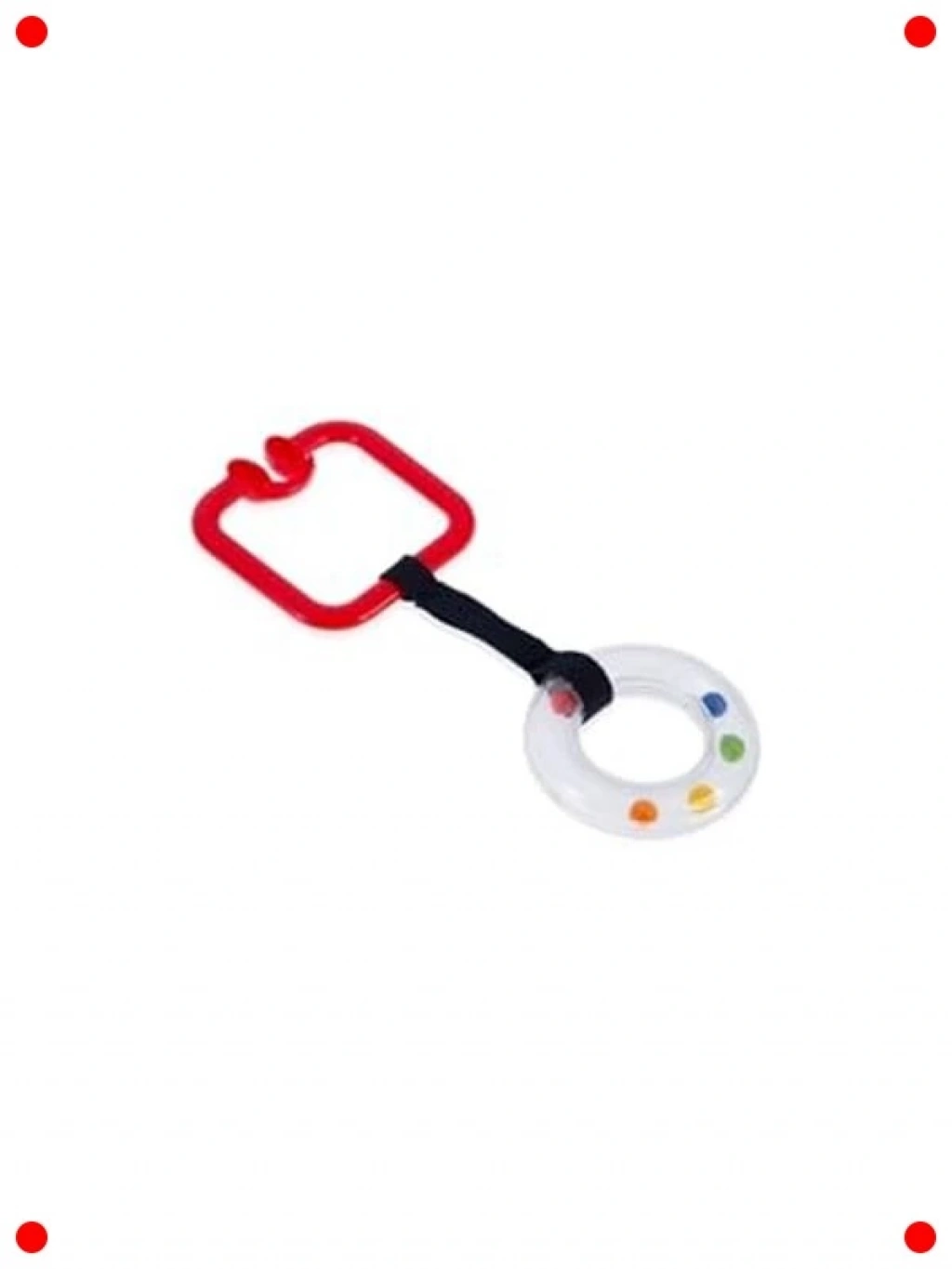 Bebeğinizin duyusal gelişimini destekleyen ve onu eğlendiren kırmızı kare tasarımlı çıngıraklı puset halkası. Bebeğinizin pusetine, ana kucağına veya bebek arabasına kolayca takılabilir. İçindeki çıngırak sesiyle bebeğinizin dikkatini çekerken, parlak rengiyle görsel stimülasyon sağlar. Yumuşak dokusu ve güvenli malzemeleri sayesinde bebeğinizin kavraması ve oynaması için idealdir. Diş çıkarma dönemlerinde de rahatlatıcı bir çiğneme oyuncağı olarak kullanılabilir. Pratik halkası sayesinde her yere kolayca taşınabilir ve bebeğinizin eğlencesini her an yanında bulundurabilirsiniz.