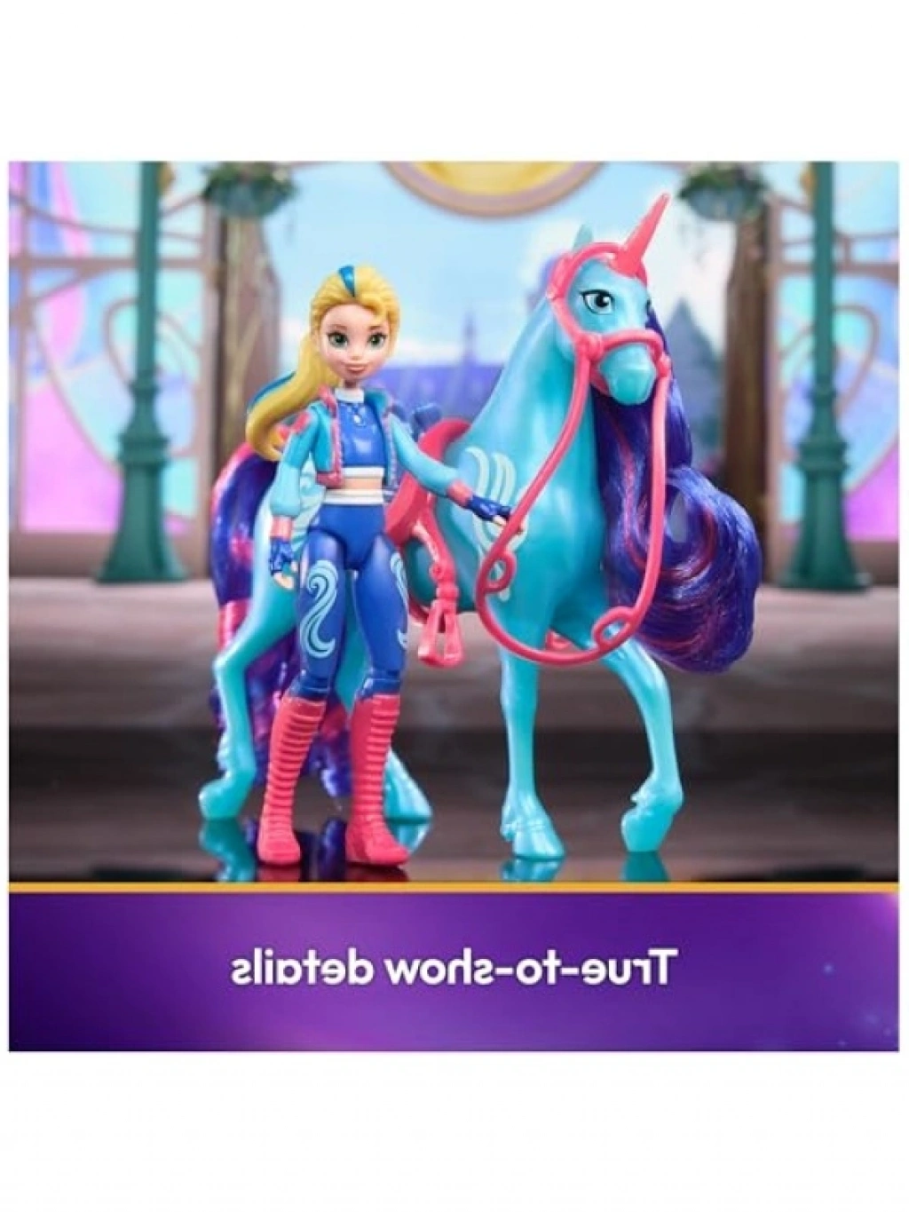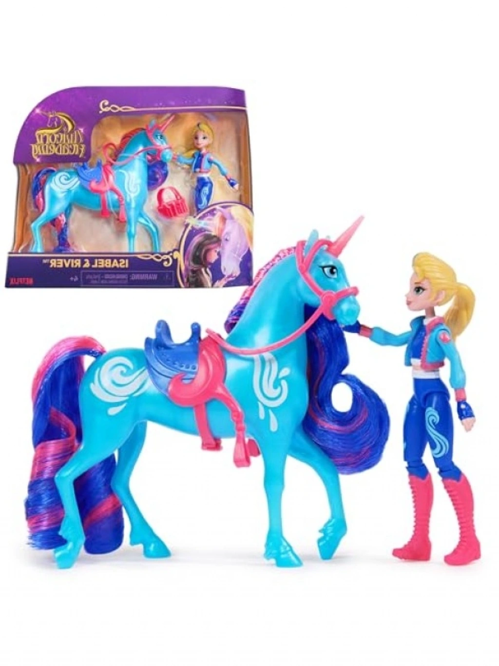 Bu eğlenceli set, hareketli bir bebek ve sevimli bir tek boynuzlu at içerir. Yaklaşık 12 cm boyunda olan bebek, çıkarılabilir eyer ve dizgin ile birlikte gelir. Çocukların hayal güçlerini geliştirecek çeşitli pozlara girebilir. Tek boynuzlu atın güvenini kazandıktan sonra yeni maceralara atılabilir. 4 yaş ve üzeri çocuklar için harika bir hediye seçeneğidir.