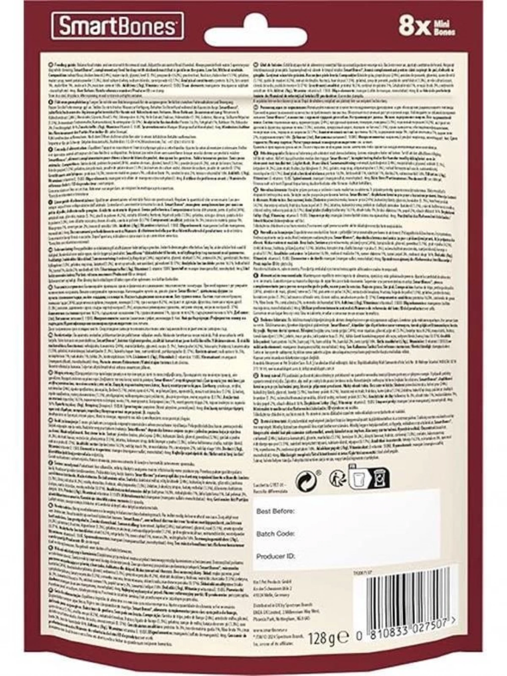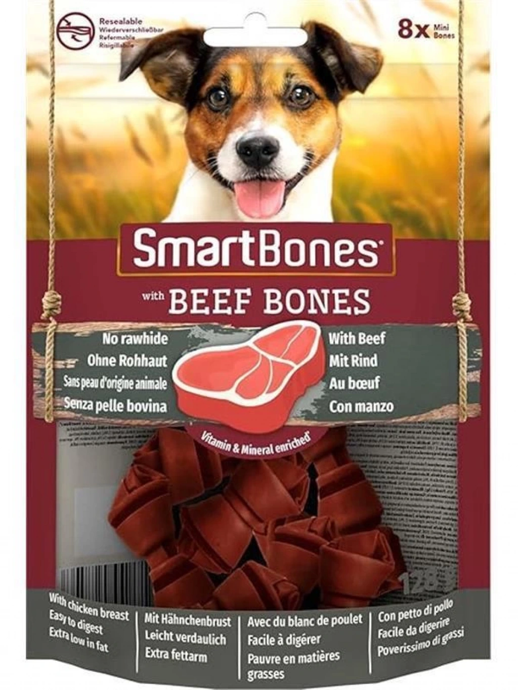 Beef Mini Küçük Boy Sığır Etli Kemik 8'li, 128 Gr Köpek Ödülü