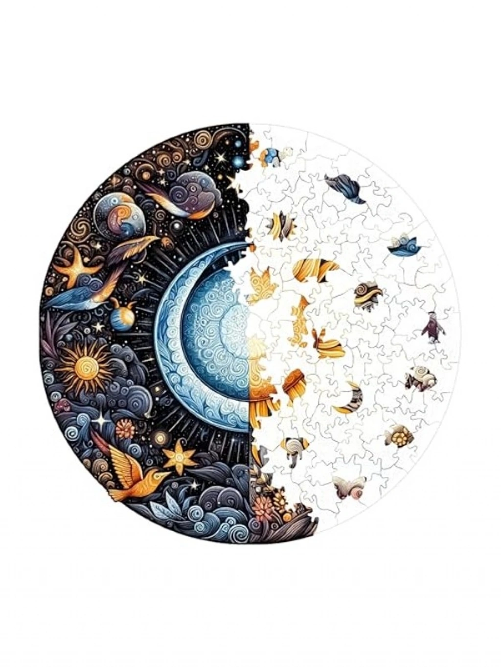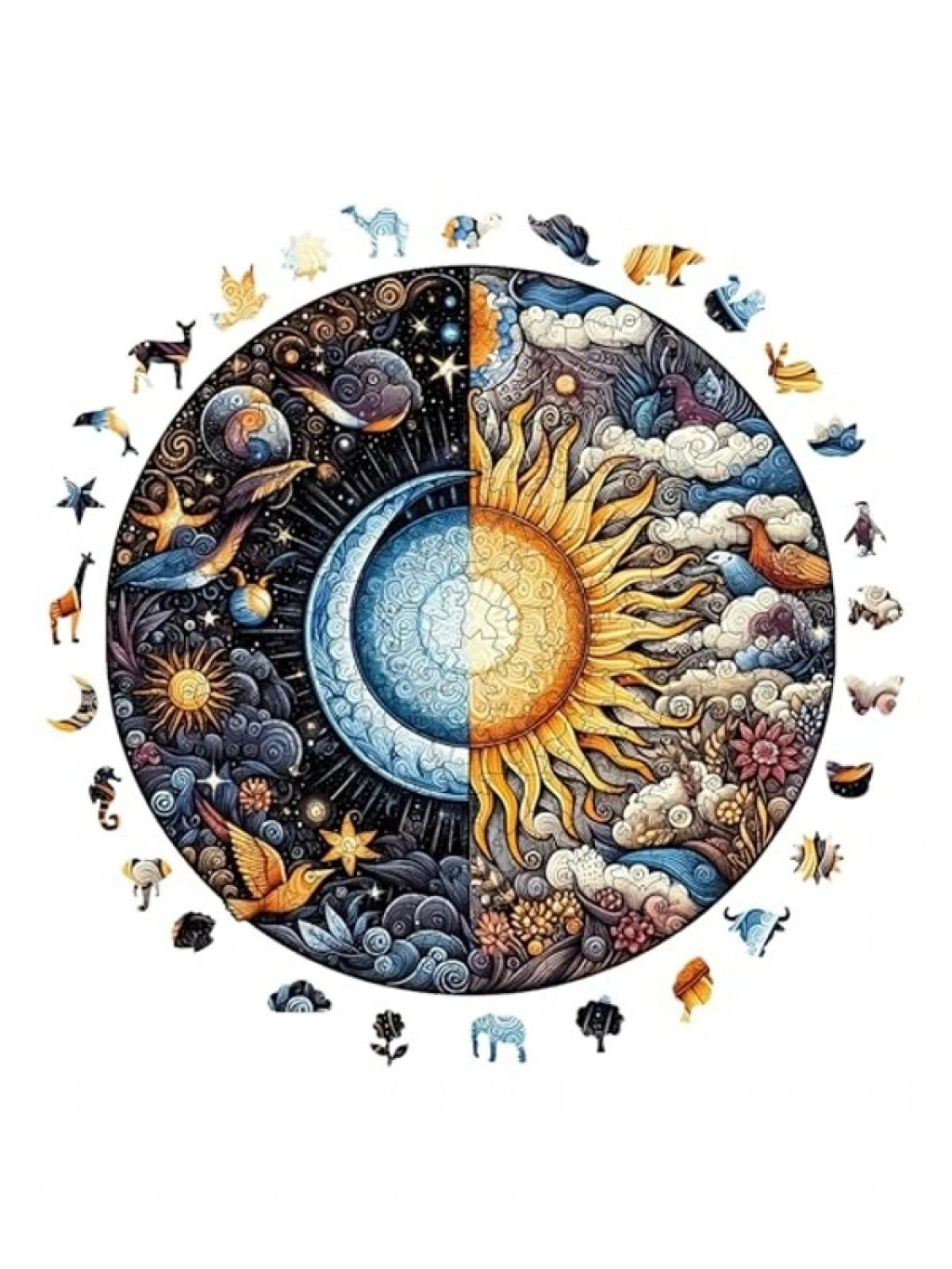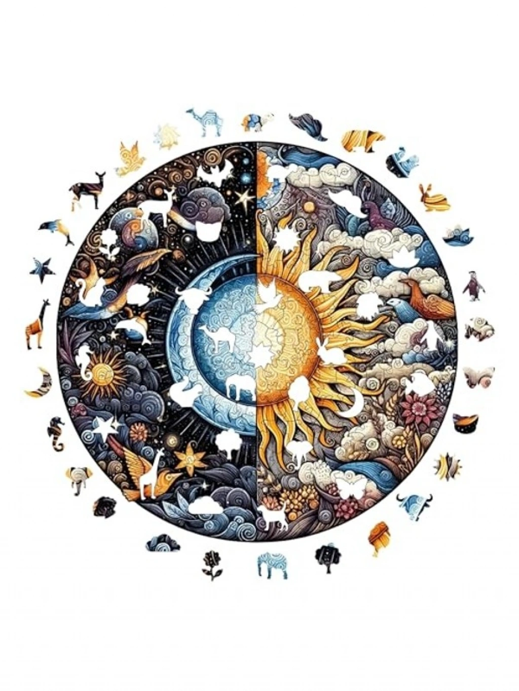 Bu ahşap puzzle, 252 benzersiz şekilli parça ile özel tematik figürler sunar. Yıldız, hayvan ve güneş gibi figürlerle zenginleştirilen bu puzzle, 3 mm kalınlığındaki yüksek dayanımlı ahşap yüzeyle lazer kesim teknolojisi ile üretilmiştir. Renkleri uzun süre canlı tutan UV baskı tekniği ile tamamlandığında koleksiyon niteliğinde bir eser ortaya çıkarır.