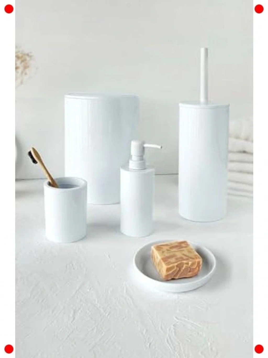 Banyonuza modern ve şık bir dokunuş katmak için tasarlanmış bu 5 parçalı aksesuar seti, tüm temel ihtiyaçlarınızı karşılar. Beyaz rengiyle ferah ve nimalist bir görünüm sunarken, banyo dekorunuzla mükemmel uyum sağlar. Sabunk, diş fırçalık, pamukk gibi işlevsel parçalarıyla banyonuzu düzenli ve estetik tutar. Dayanıklı malzemelerden üretilş op uzun ömürlü kullanım sunar ve kolayca tezlenebilir. Hem günlük kullanım için pratik hem de safirlerinizi etkileyecek zarif bir seçimdir.