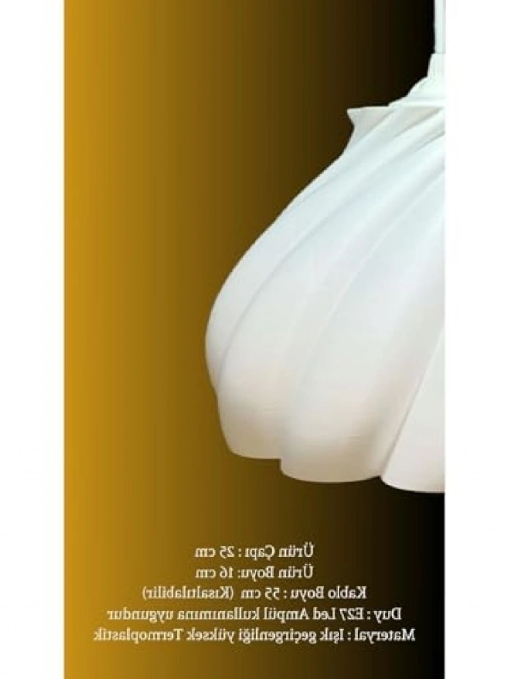 Modern tasarımıyla dikkat çeken bu beyaz tekli sarkıt avize, yatak odası, mutfak veya oturma odası için ideal aydınlatma çözümüdür. 25x70 cm boyutlarıyla mekanınıza zarif bir dokunuş katar. Kullanışlı ve şık yapısıyla, dekorunuza estetik bir katkı sağlar. Işık kaynağını mükemmel bir şekilde yayarak mekanınızdaki atmosferi değiştirebilir.