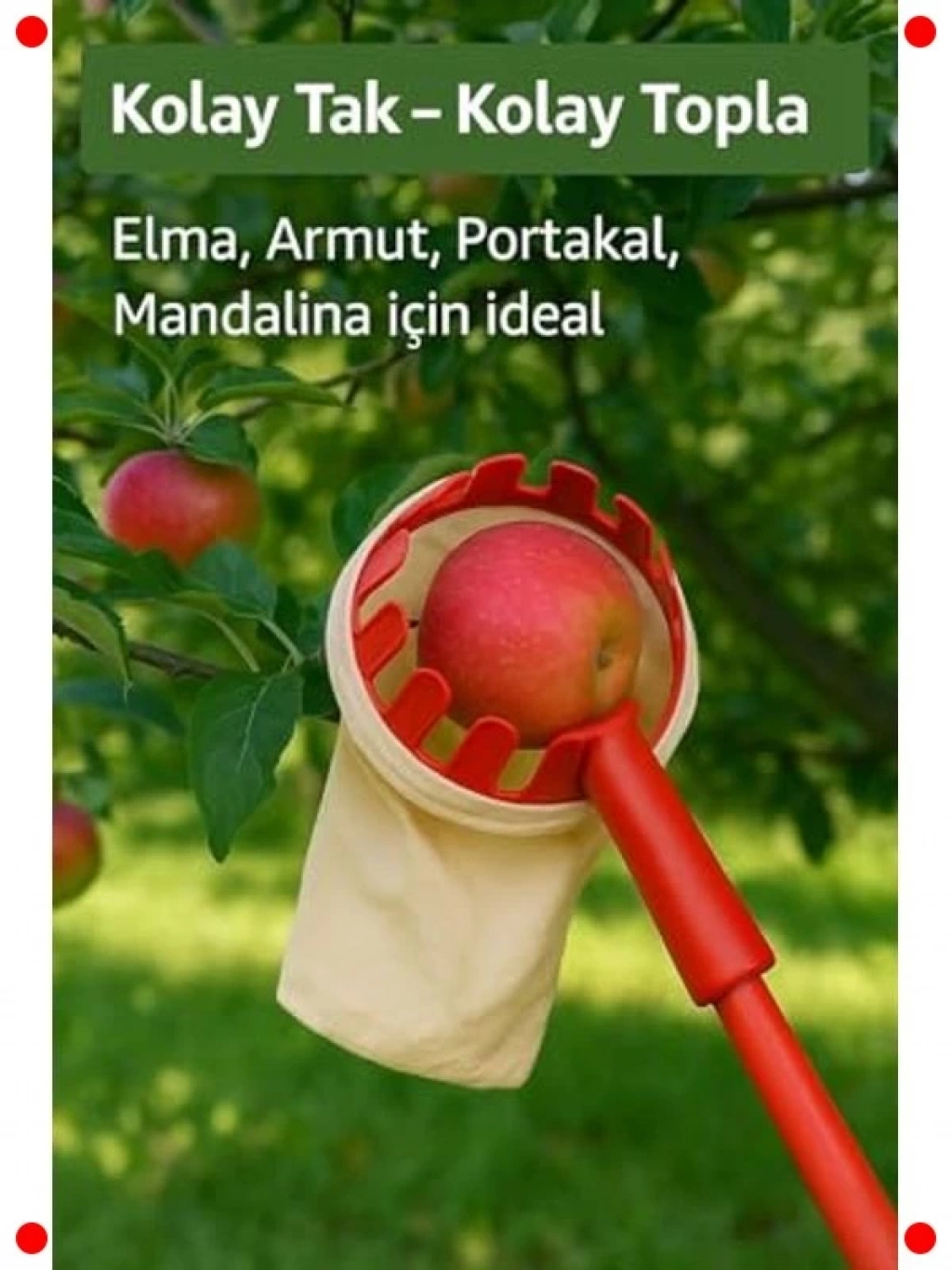 Bahçenizdeki meyveleri kolayca ve zarar vermeden toplamanızı sağlayan bu pratik aparat, özellikle yüksek dallardaki meyvelere ulaşmak için idealdir. Hafif plastik başlığı ve yumuşak bez torbası sayesinde meyvelerin düşme anında ezilmesini veya zarar görmesini engeller. Torba, topladığınız meyvelerin güvenli bir şekilde birikmesini sağlar, böylece sık sık yere eğilmenize gerek kalmaz. Ergonomik tasarımı, uzun bir sap (dahil değildir) ile kullanıldığında bile rahat bir deneyim sunar. Elma, armut, şeftali gibi birçok farklı meyve türü için uygundur.