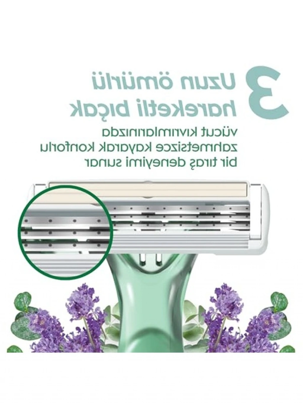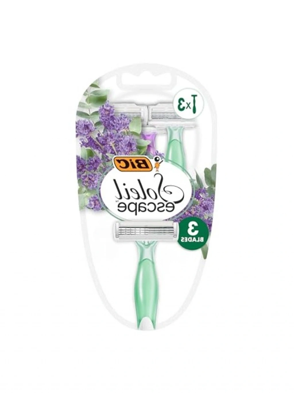 BiC Soleil Escape, 3 bıçaklı kadın tıraş bıçağı paketi, lavanta ve okaliptüs kokusu ile zenginleştirilmiştir. Kavisli gövdesi ile rahat bir tutuş sunarken, badem yağı ile zenginleştirilmiş nem bandı ile cildinize nazik bir bakım sağlar. İki farklı gövde renginden birini tercih ederek, kişisel zevkinizi yansıtabilirsiniz.