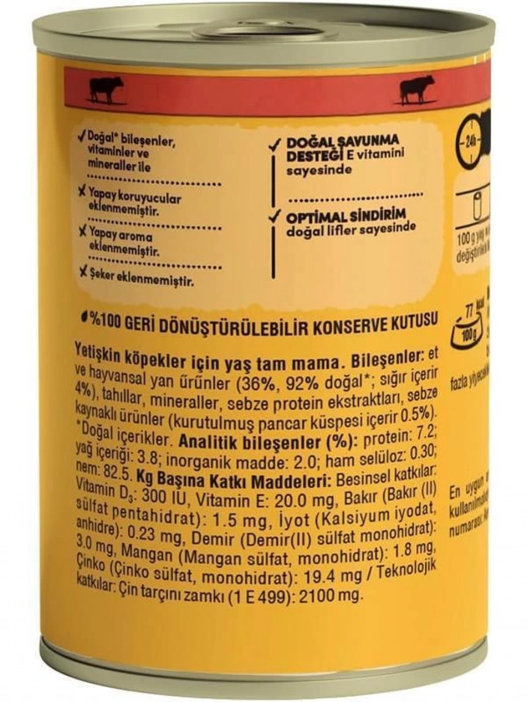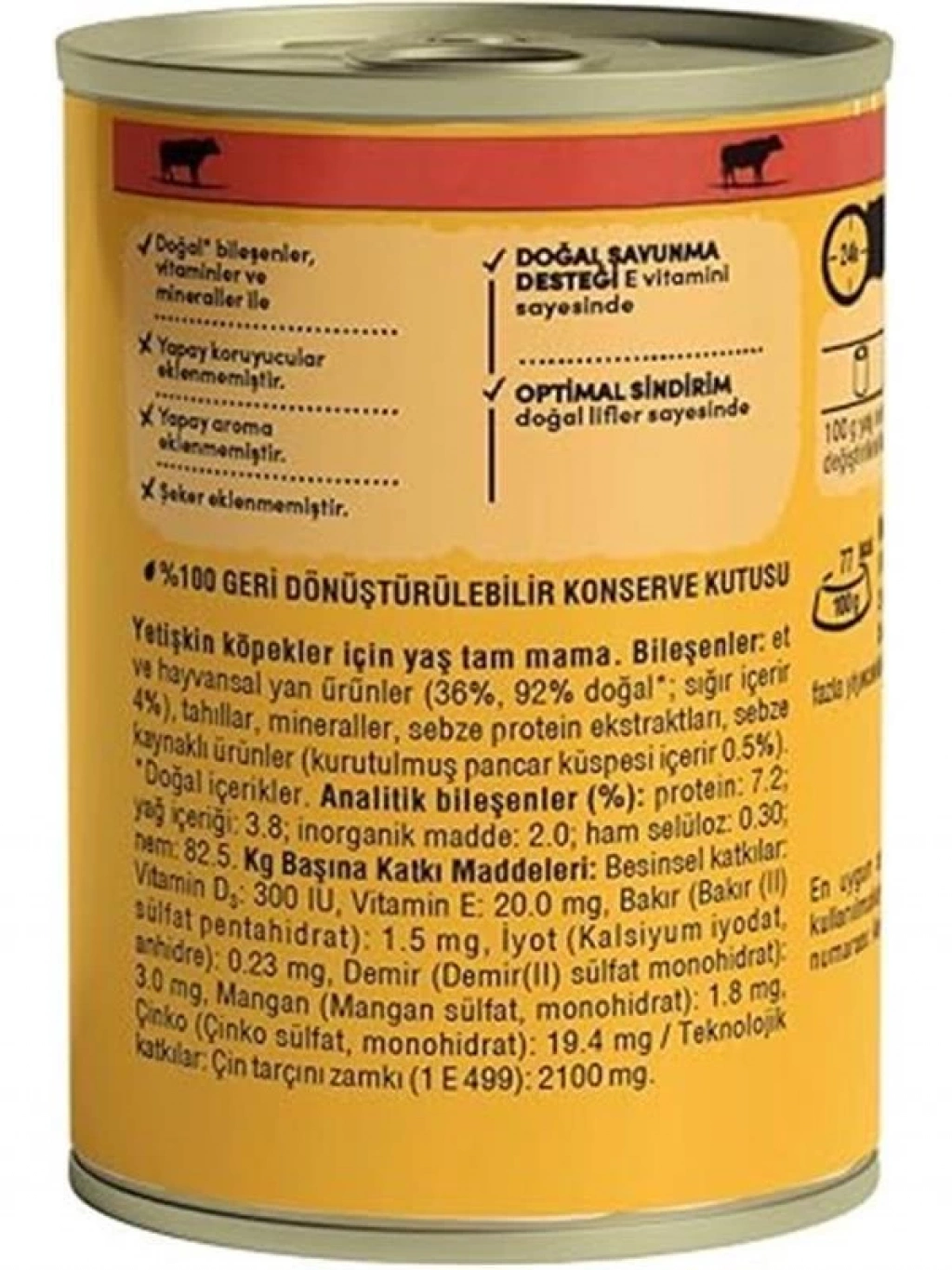 Konserve Köpek Maması Yetişkin Sığır Etli, Parça Etli 415 GR Yaş Mama Düşük Tahıllı