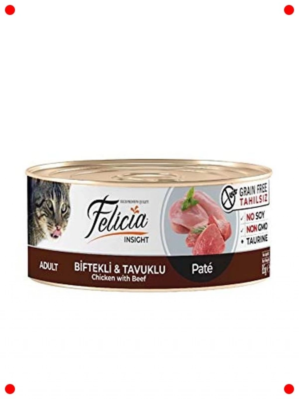 Kedilerin damak zevkine uygun olarak özenle hazırlanan bu tahılsız yaş mama, biftek ve tavuk etlerinin lezzetli karışımını sunar. Kıyılmış formu sayesinde kolayca tüketilebilir ve kedinizin her lokmada zengin lezzetin tadını çıkarmasını sağlar. Tahıl içermeyen özel formülü, hassas sindirim sistemine sahip kediler için idealdir, olası alerjik reaksiyonları en aza indirmeye yardımcı olur. Yüksek protein içeriği, kedinizin güçlü kas yapısını desteklerken, ihtiyacı olan vitamin ve minerallerle dengeli beslenmesine katkıda bulunur. 85 gramlık pratik paketi, tek porsiyonluk taze lezzet sunarak kedinizin öğünlerini keyifli hale getirir. Evcil dostunuzun enerji dolu ve mutlu bir yaşam sürmesine destek olur.
