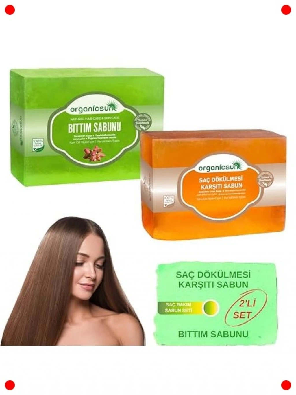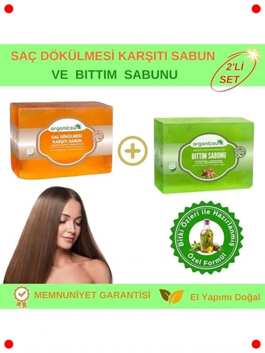 Doğanın gücünü saçlarınıza taşıyan bu 2'li sabun seti, geleneksel bıttım sabunu ile saç dökülmesine karşı özel formüle edilmiş sabunu bir araya getiriyor. Bıttım sabunu, saç derisini derinlemesine temizler, kepek sorununa karşı etkili olabilir ve saçların güçlenmesine yardımcı olur. Saç dökülmesine karşı sabun ise, özel bitkisel özleriyle saç köklerini besleyerek dökülmeyi azaltmaya ve yeni saç oluşumunu desteklemeye odaklanır. Doğal içerikleri sayesinde saçlarınızı yıpratmadan bakım yapar, daha sağlıklı, parlak ve dolgun saçlara kavuşmanıza yardımcı olur. Tüm saç tipleri için uygundur.