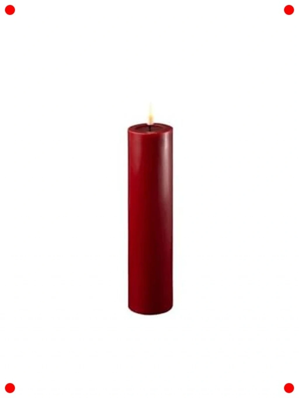 Evinize sıcak ve davetkar bir atmosfer katacak bu bordo renkli LED mum, 5x20 cm boyutlarıyla dikkat çekici ve zarif bir dekorasyon öğesidir. rçek balmumu görünümüne sahip bu mum, alevsiz LED teknolojisi sayesinde duman, erime veya yangın riski olmadan güvenli bir aydınlatma sunar. rçek bir mumun titreyen alev efektini başarıyla taklit ederek romantik ve huzurlu bir ortam yaratır. Uzun ömürlü LED ampulleri sayesinde pilleri oldukça az tüketir ve kesintisiz aydınlatma sağlar. Salon, yatak odası, yemek masası veya özel günleriniz (doğum günü, yıl dönümü, parti) için mükemmel bir seçimdir. Estetik görünümüyle her türlü modern veya klasik dekorasyon tarzına uyum sağlar, mekanlarınıza sofistike bir dokunuş katar.