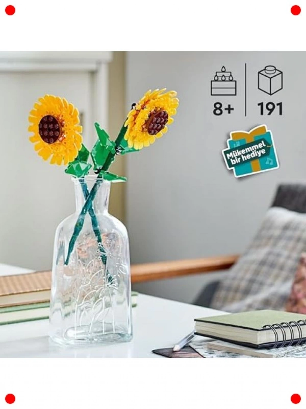 Bu benzersiz botanik ayçiçeği modeli yapım seti ile kendi dekoratif çiçeğinizi inşa etmenin keyfini çıkarın. 191 parçadan oluşan bu set, hem eğlenceli bir yapım deneyimi sunar hem de tamamlandığında evinize veya ofisinize zarif bir dokunuş katar. Koleksiyonluk değeri olan bu model, yetişkinler ve genç yetişkinler için mükemmel bir hobi ve rahatlama aktivitesidir. Sanatsal yönünüzü keşfederken, sergilenebilir ve uzun ömürlü bir çiçek aranjmanı yaratın.