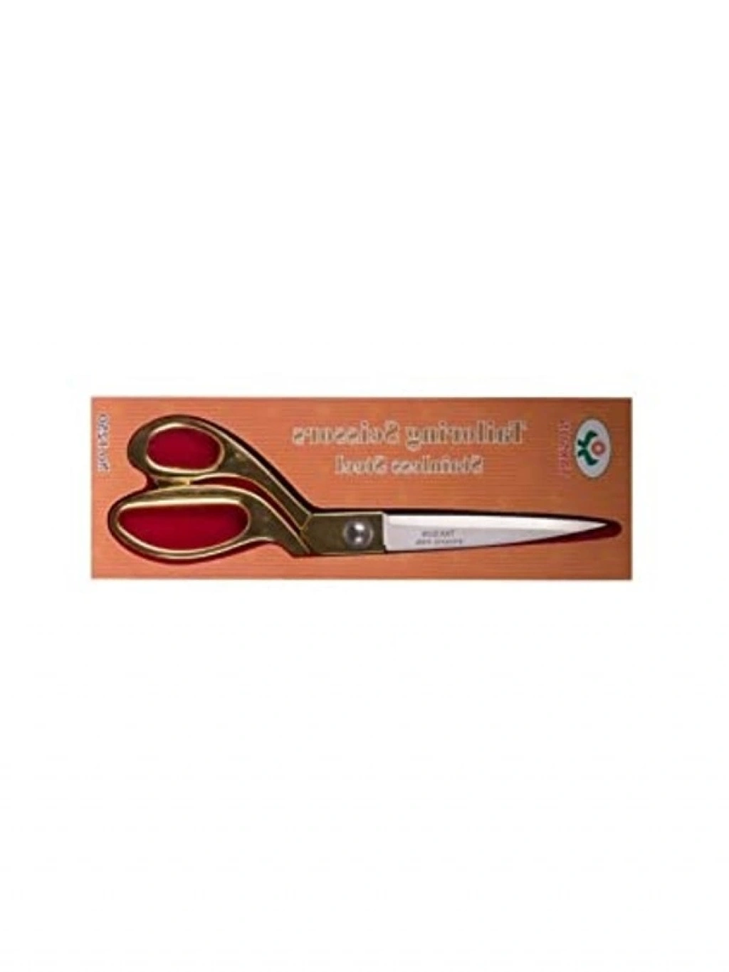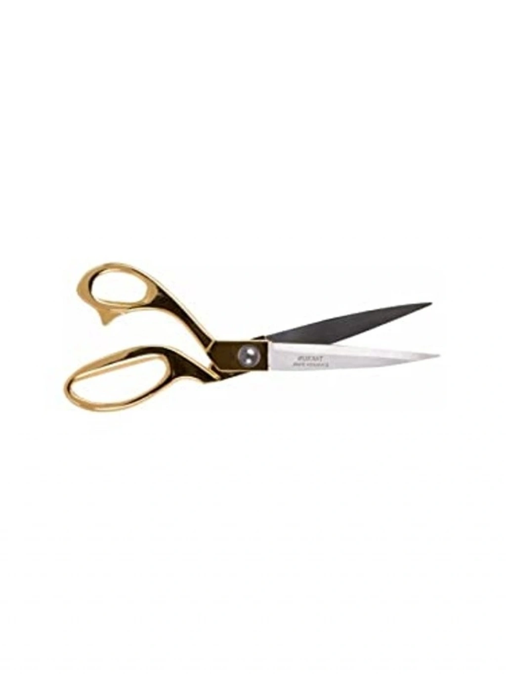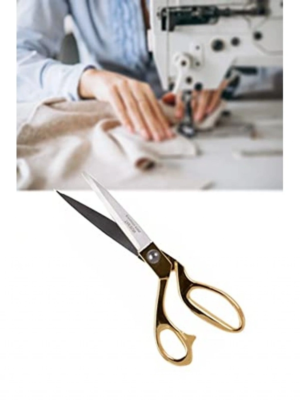 Büyük boy profesyonel terzi makası, 10 inç (26 cm) uzunluğunda ve çelik yapıdadır. Her türlü kumaş için mükemmel kesim yeteneği sunan bu makas, metal sarı sapı ve lazer ucu ile dikkat çeker. Farklı dikiş projelerinizde güvenle kullanabilirsiniz.