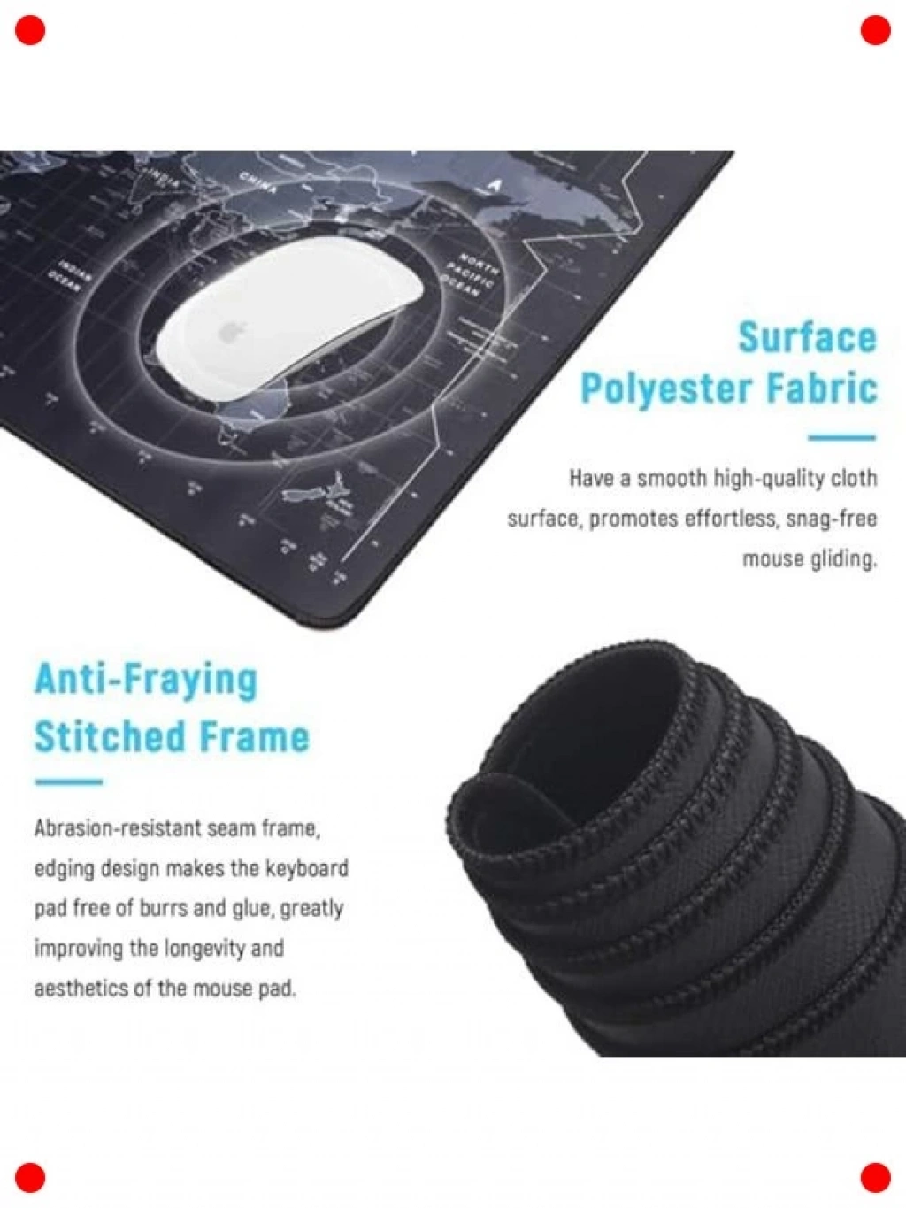 Geniş 90x40 cm boyutlarıyla bu masa pedi, klavyeniz ve fareniz için mükemmel bir alan sunarken, masanıza dünya haritası deseniyle estetik bir görünüm katar. Pürüzsüz yüzeyi, farenizin hassas ve akıcı hareket etmesini sağlayarak oyun veya iş performansınızı artırır. Alt kısmındaki kaymaz kauçuk taban, en yoğun kullanımlarda bile pedin sabit kalmasını garanti eder. Dayanıklı malzemesi uzun ömürlü kullanım vaat eder ve masanızı çizilmelere karşı korur. Hem oyuncular hem de profesyoneller için ideal, fonksiyonel ve görsel açıdan çekici bir üründür.