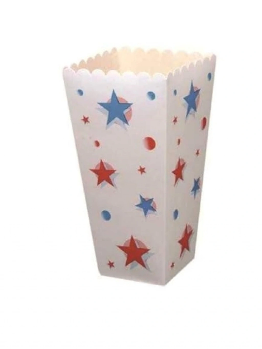 50 adet büyük karton popcorn kutusu, film izlerken veya etkinliklerde atıştırmalıklarınızı sunmak için idealdir. Yüksekliği 19,5 cm, üst genişliği 9,5 x 9,5 cm, alt tabanı ise 6,5 x 6,5 cm ölçülerindedir. Dayanıklı yapısıyla kullanımı kolaydır ve şık bir görünüm sunar.
