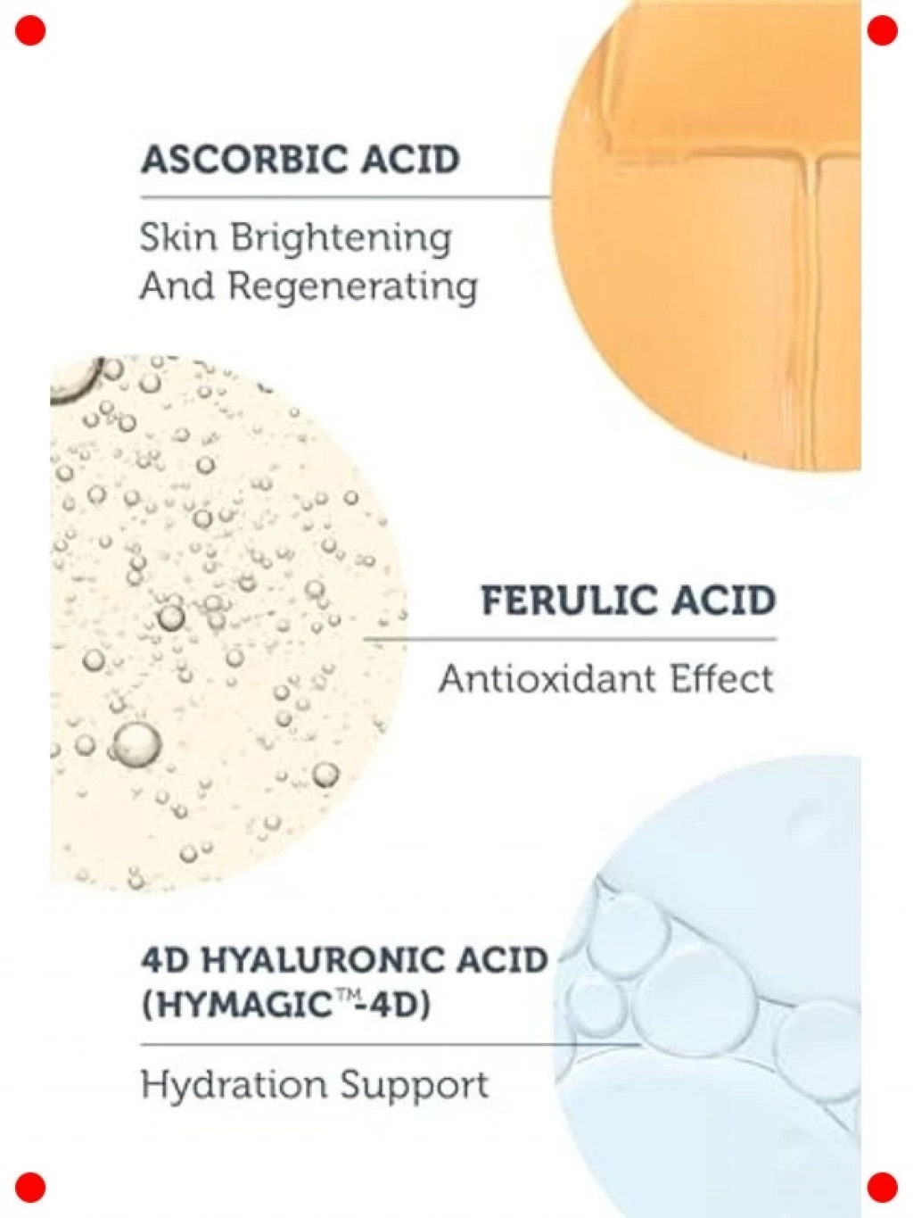 Cildinize ışıltı katmak ve cilt tonunuzu eşitlemek için özel olarak formüle edilmiş bu güçlü C vitamini serumu, %10 askorbik asit ve %0.5 ferulik asit içerir. 30 ml'lik damlalıklı şişesiyle pratik bir kullanım sunar. Ciltteki koyu leke görünümünü azaltmaya, cildi aydınlatmaya ve daha canlı bir görünüm kazandırmaya yardımcı olur. Güçlü antioksidan özellikleriyle çevresel faktörlere karşı cildinizi korur. Tüm cilt tipleri için uygun olan bu serum, düzenli kullanımda daha pürüzsüz, eşit tonlu ve ışıltılı bir cilde kavuşmanızı destekler.