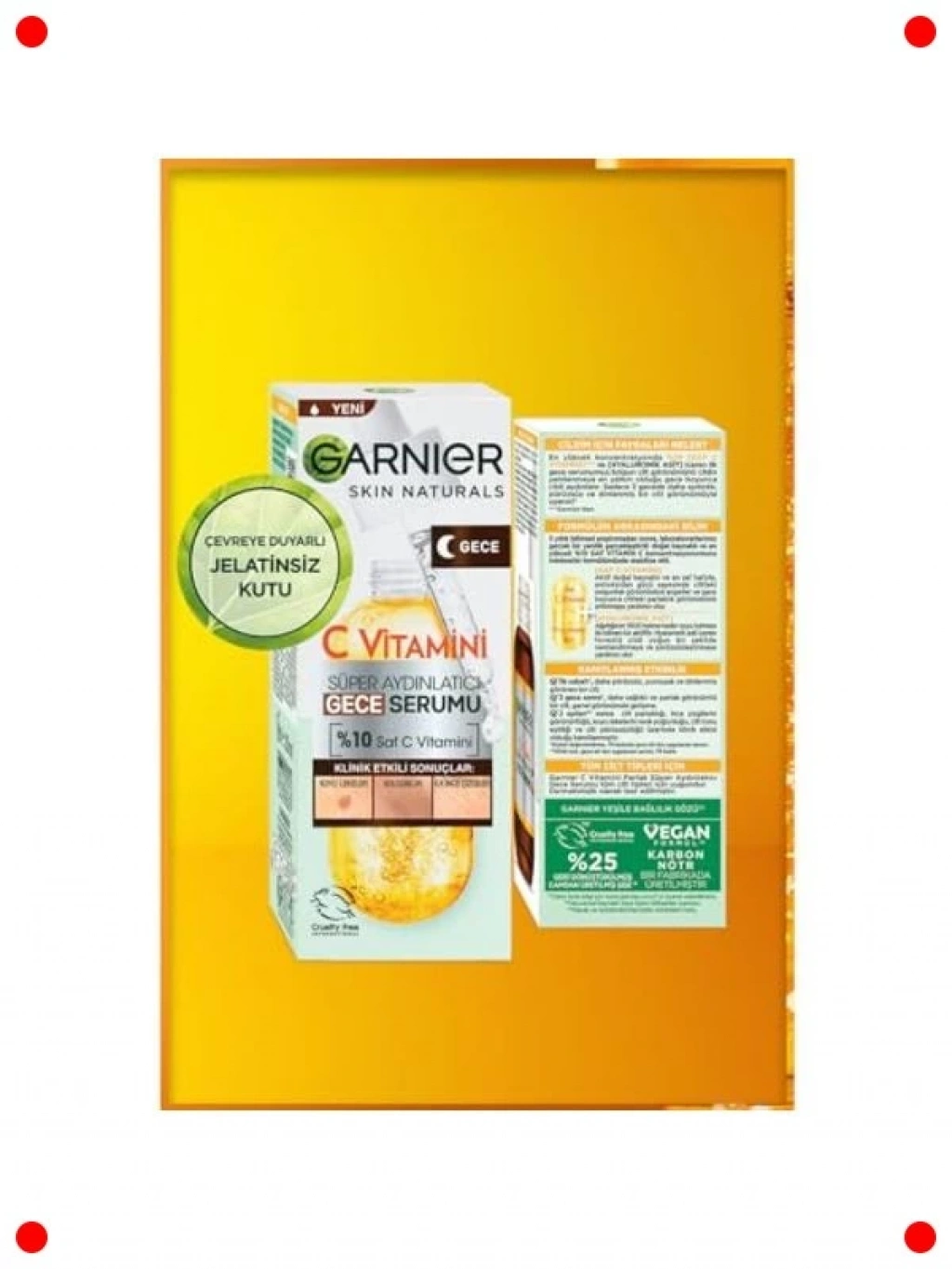 Cilt tonu eşitsizlikleri ve mat görünümle mücadele edenler için tasarlanmış bu güçlü gece serumu, uyku sırasında cildinizi yenilemeye ve aydınlatmaya yardımcı olur. Yüksek konsantrasyonda C vitamini içeren formülü sayesinde, ciltteki koyu lekelerin görünümünü azaltmaya ve cilde ışıltı kazandırmaya destek olur. Sabah uyandığınızda daha eşit tonlu, daha canlı ve daha pürüzsüz bir ciltle karşılaşmanızı sağlar. Hafif dokusu kolayca emilir ve ciltte ağırlık yapmaz. Gece boyunca cildinizi besleyerek sağlıklı bir görünüm kazandırır.