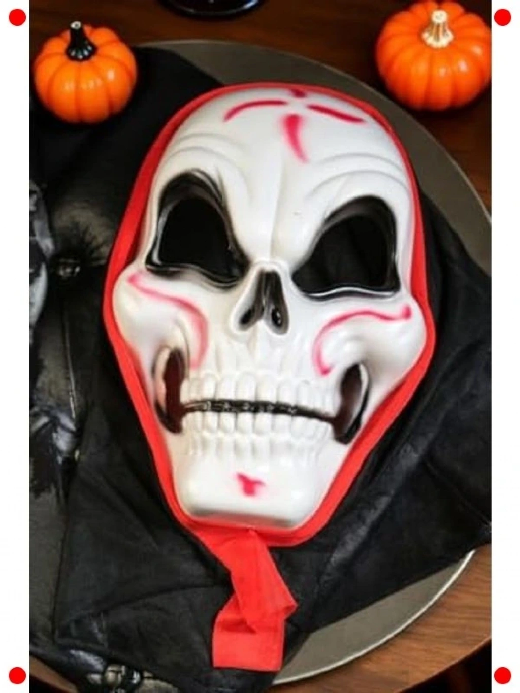 Cadılar Bramı kostümünüzü bu korkunç ve şık iskelet maskesiyle tamamlın! Kırmızı ve beyaz renklerin dramatik uyumu ve tüllü detları sesinde partilerin en dikkat çekici figürü olacaksınız. Hafif ve rahat yapısı, maskeyi uzun süre takabilmenizi sağlar. Hem ürkütücü hem de estetik bir görünüm sunarak, cenin atmosferine mükemmel uyum sağlar. Kaliteli malzemelerden üretilmiş olup tekrar kullanılabilir. Eğlenceli ve unutulmaz bir Cadılar Bramı deneyimi için vazçilmez bir aksesuardır.