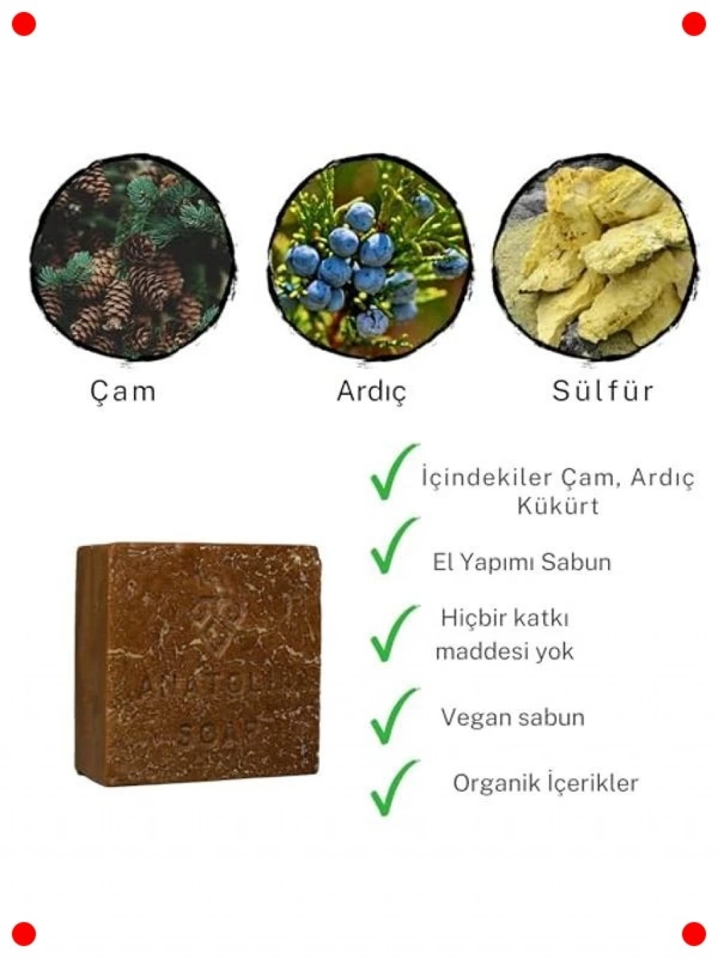 Cilt sorunlarına doğal bir çözüm arayanlar için özel olarak üretilmiş bu çam, ardıç ve kükürt içerikli sabun ile tanışın. Geleneksel yöntemlerle hazırlanan formülü, özellikle egzama ve sivilceye yatkın ciltlerin ihtiyaçlarını karşılamak üzere tasarlanmıştır. İçeriğindeki kükürt, cildi derinlemesine temizler ve gözenekleri arındırırken, çam ve ardıç özleri cildin doğal dengesini destekler, yatıştırıcı ve arındırıcı etkiler sunar. Cildin tahrişini azaltmaya ve sivilce oluşumunu kontrol altına almaya yardımcı olur. 130 gramlık kalıp formuyla uzun süreli kullanım imkanı sunar. Sağlıklı ve dengeli bir cilt için doğal bir tercih.