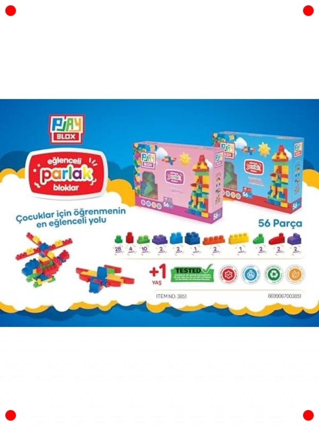 Minik mucitler için tasarlanmış bu 56 parçalık canlı renkli yapı blokları setiyle yaratıcılık sınır tanımıyor! 1 yaş ve üzeri erkek ve kız çocukları için özel olarak üretilen bu bloklar, parlak ve dikkat çekici renkleriyle çocukların hayal gücünü harekete geçirir. Büyük boyutları sayesinde küçük ellerin kolayca kavrayıp birleştirebileceği bu bloklar, ince motor becerilerinin, el-göz koordinasyonunun ve problem çözme yeteneklerinin gelişimini destekler. Güvenli ve dayanıklı malzemeden üretilmiştir, çocuklarınızın güvenle oynayabileceği saatler süren eğlence vaat eder. Farklı yapılar inşa ederek sonsuz kombinasyonlar yaratın.