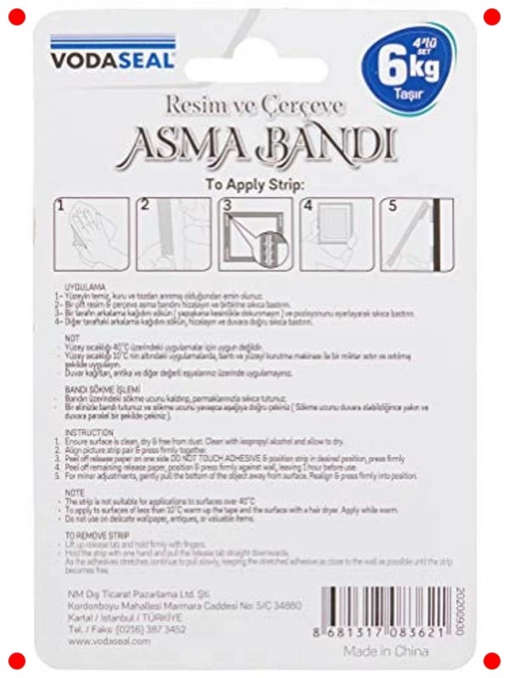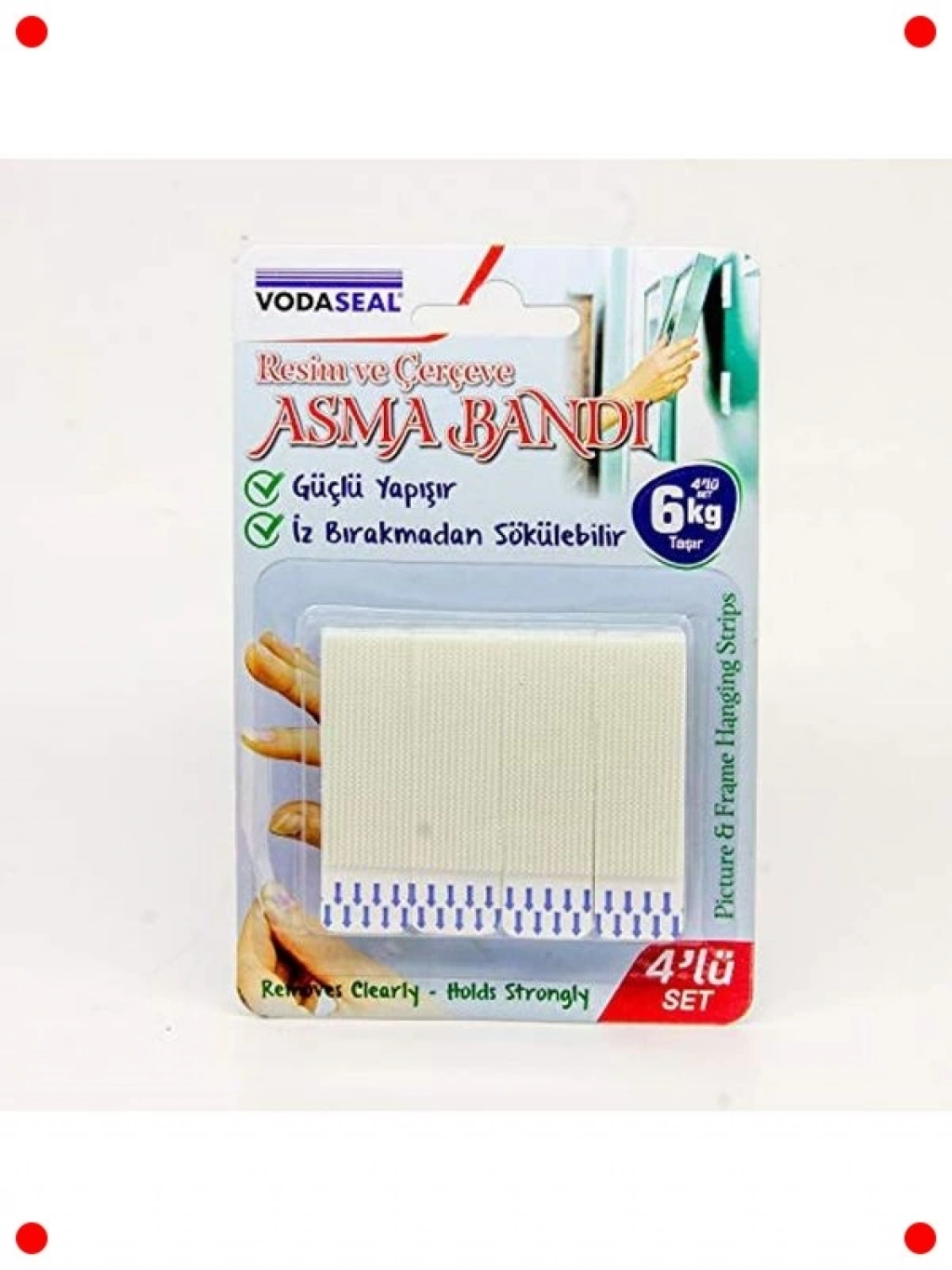 Bu pratik 4'lü cırt bant seti ile evinizdeki dekorasyonu zahmetsizce düzenleyin. Matkap veya çivi kullanmadan resim çerçevelerini, panoları veya hafif dekoratif objeleri duvarlarınıza asmanızı sağlar. Güçlü yapışkan özelliği sayesinde güvenli bir tutuş sunarken, duvar yüzeyine zarar vermez ve kalıntı bırakmadan kolayca çıkarılabilir. Yeniden konumlandırılabilir yapısıyla dekorasyonunuzu istediğiniz zaman değiştirebilirsiniz. Montajı son derece kolaydır; sadece yüzeyi temizleyin, bantları yapıştırın ve objenizi sabitleyin. Kiracı dostu bu ürün, duvarlarda delik açma derdinden kurtararak yaşam alanlarınıza modern ve esnek bir çözüm sunar.