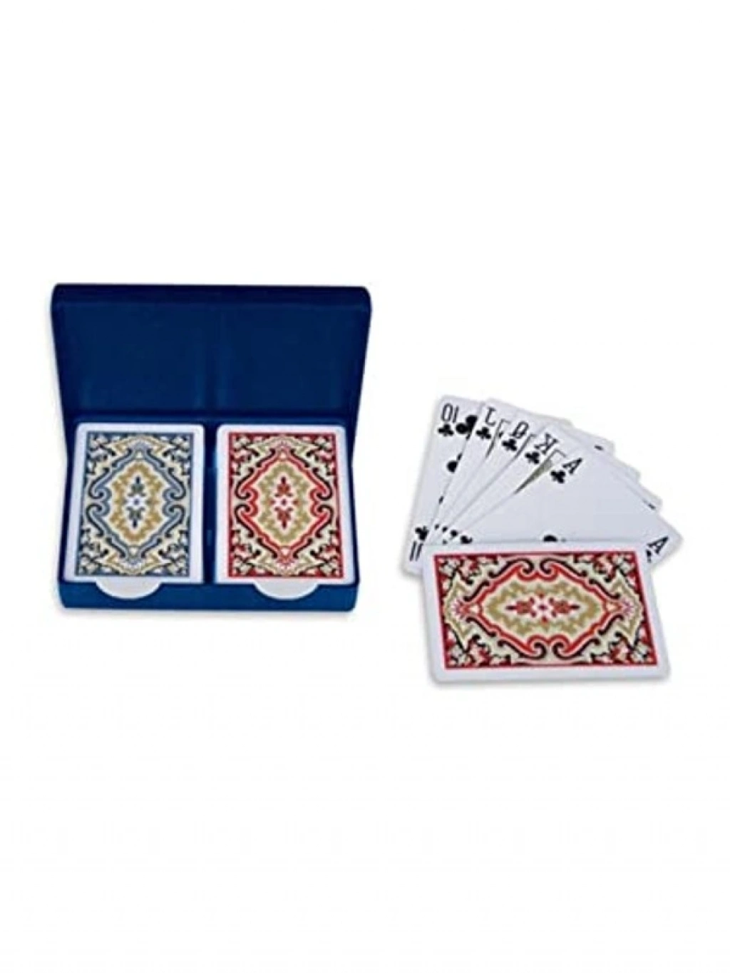 Çift deste oyun kağıdı, kaliteli plastik materyalden üretilmiştir ve özel bir kutu içerisinde sunulmaktadır. Bu set, eğlenceli oyun geceleri için ideal bir seçenektir. Duvardaki oyun masanızda veya arkadaş buluşmalarında keyifli anlar yaşamanızı sağlayacak.