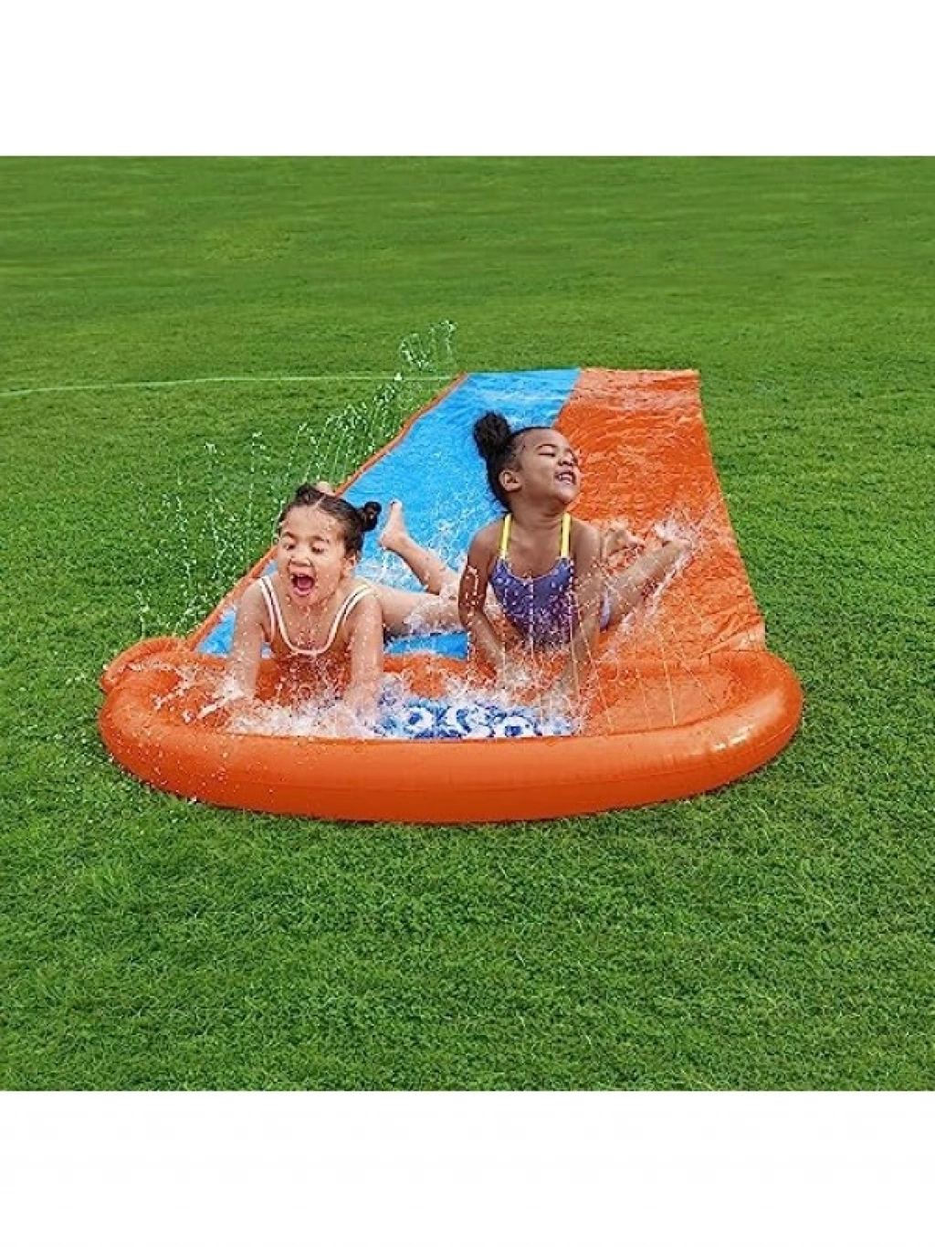 4.88 m uzunluğundaki bu çift kişilik su kaydırağı, yarış ve eğlence grupları için mükemmel bir seçimdir. Hiçbir alet gerektirmeden bahçe hortumuna bağlanarak kolayca kullanıma hazır hale gelir. Su bitiş hattındaki büyük iniş, su sıçratması sağlarken yerleşik püskürtücüler kaydırak yüzeyinin kaygan kalmasını garanti eder. Eğlenceli ve heyecan dolu bir su aktivitesi sunarak yaz günlerinizi renklendirir.