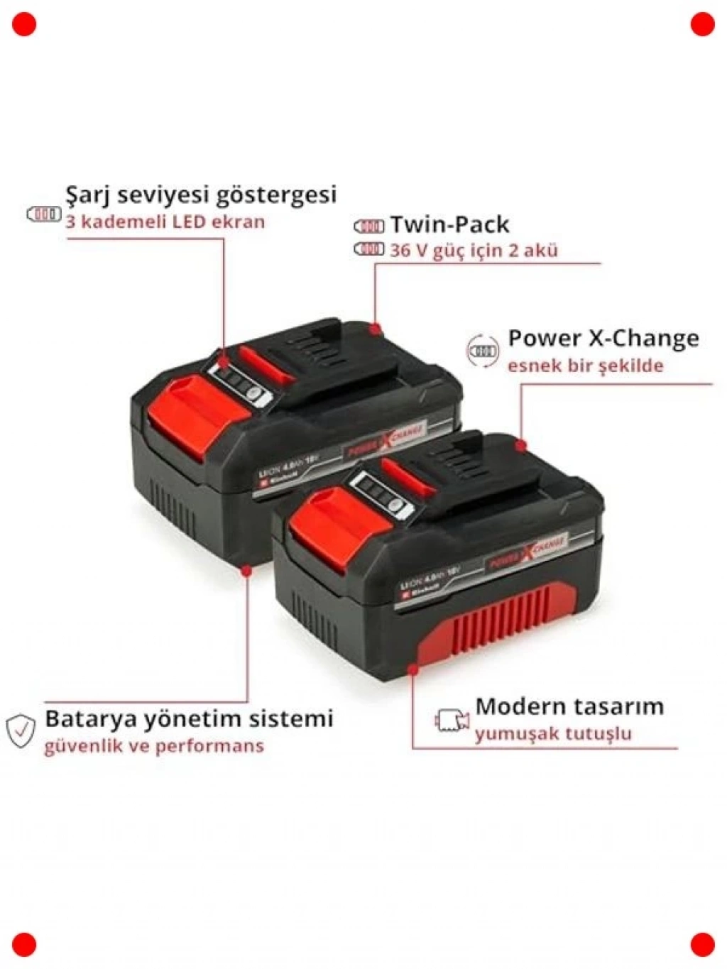Kablosuz aletlerinizin performansını ikiye katlayın! Bu çift paket 18V 4.0 Ah lityum iyon akü seti, uzun süreli ve güçlü çalışmalar için idealdir. Özellikle 36V güç gerektiren aletler veya kesintisiz çalışma ihtiyacı olan projeler için mükemmel bir çözümdür. Akü sistemindeki diğer aletlerle uyumlu olup, geniş bir kullanım alanı sunar. Akıllı teknoloji sayesinde aşırı şarj, deşarj ve ısınmaya karşı koruma sağlar. Sağlam yapısıyla uzun ömürlü kullanım sunar. Her zaman yedek bir akünüzün olmasını isteyenler için pratik bir seçenektir.