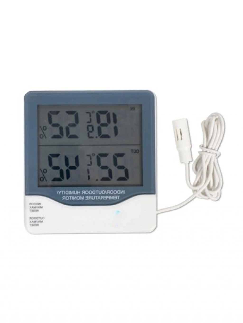 Gelişmiş çift sensör teknolojisi ile hem iç hem de dış mekan sıcaklık ve nem değerlerini anlık olarak ölçebilirsiniz. Geniş ölçüm aralığı, farklı ortamlarda güvenilir veri sağlamanıza yardımcı olur. Yüksek hassasiyetli sensörler sayesinde doğru ölçümler alırken, 1,5 metre uzunluğundaki harici sensör kablosu ile dış mekan ölçümlerini rahatlıkla gerçekleştirebilirsiniz. Kolay okunabilir büyük LCD ekranı ile verileri anında takip edebilir, min/max hafıza fonksiyonu ile gün içerisindeki değişimleri gözlemleyebilirsiniz. Santigrat (°C) ve Fahrenheit (°F) birimleri arasında geçiş yaparak, istediğiniz ölçüm birimini seçebilirsiniz. Hem duvara monte edilebilir hem de masa üzerinde kullanılabilir tasarımı ile her alana uyum sağlar.