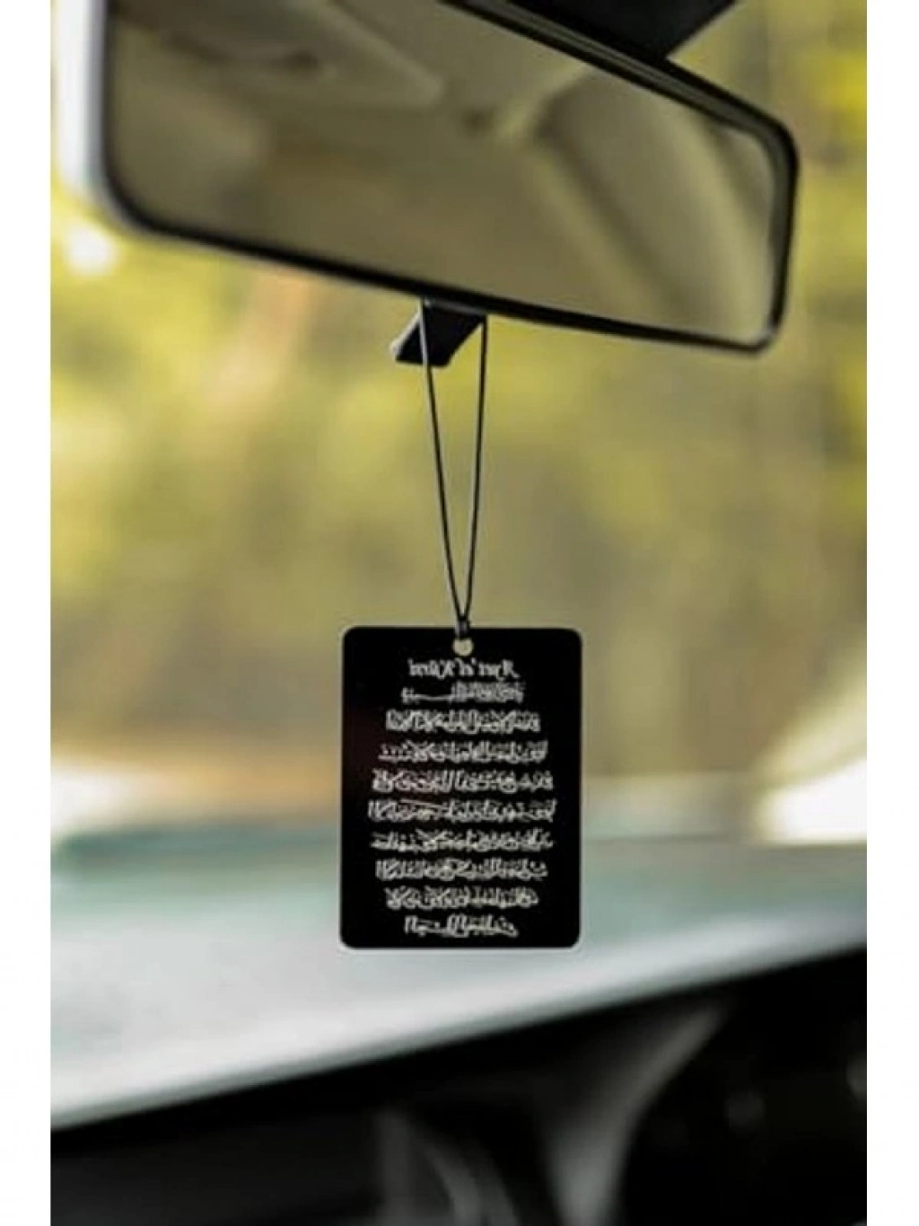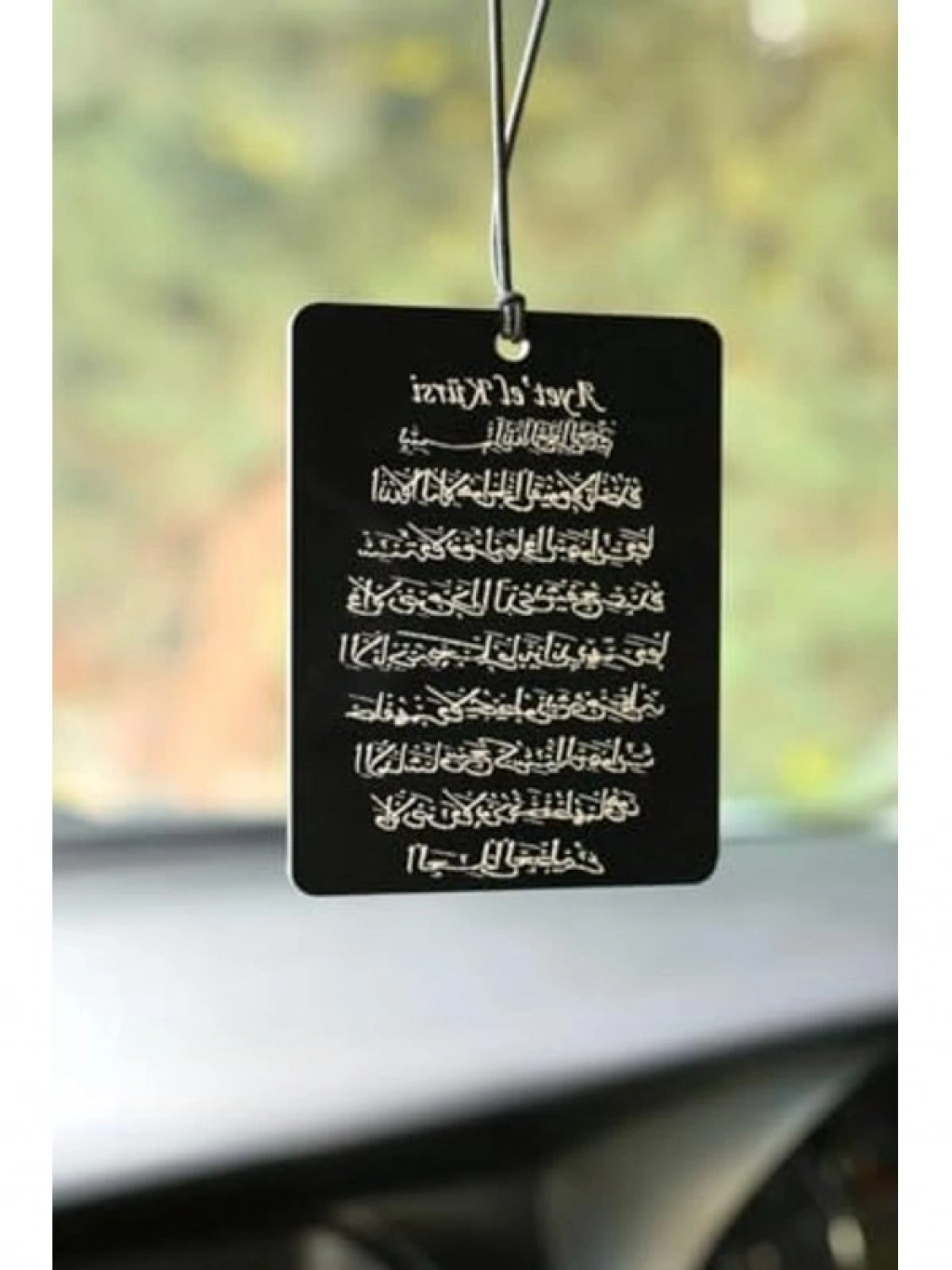Dikiz aynası için tasarlanmış olan çift taraflı araba süsü, Ayetel Kürsi motifine sahip olup, hem estetik hem de manevi bir dokunuş sağlar. Bu oto aksesuarı, aracınızın iç mekanına zarif bir hava katarken, hediyelik olarak da sevdiklerinizi mutlu edecek bir seçenek sunar.