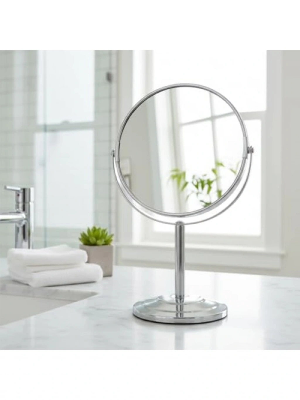 Bu paslanmaz çelik ayaklı makyaj ve tıraş aynası, bir yüzeyi normal yansıtma sunarken diğer yüzeyi 5 kat büyütme özelliğine sahiptir. 360 derece dönebilme özelliği ile her açıdan kullanım kolaylığı sağlar. Şık ve dayanıklı metal gövdesi ile uzun ömürlüdür. Banyo tezgahı veya makyaj masasında kullanıma uygundur. 16 cm çapı ile detaylı büyütme sunarken genel görünümü kontrol etmek için yeterlidir.