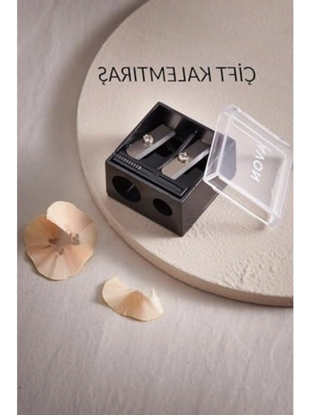 Çift taraflı kalemtıraş, 3 cm x 3 cm x 2,5 cm boyutlarıyla pratik bir kullanıma sahiptir. Plastik yapısı ile dayanıklıdır ve kalın ile ince kalemler için ayrı bıçaklar içerir. Ürün, uygun saklama koşullarında 36 ay boyunca stabilitesini koruyabilir.