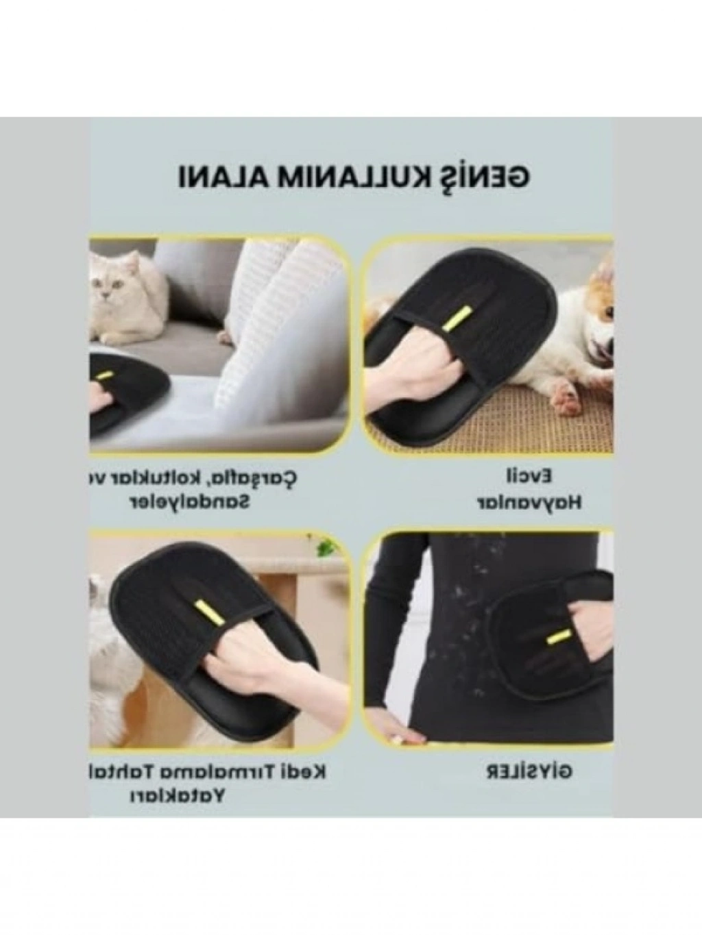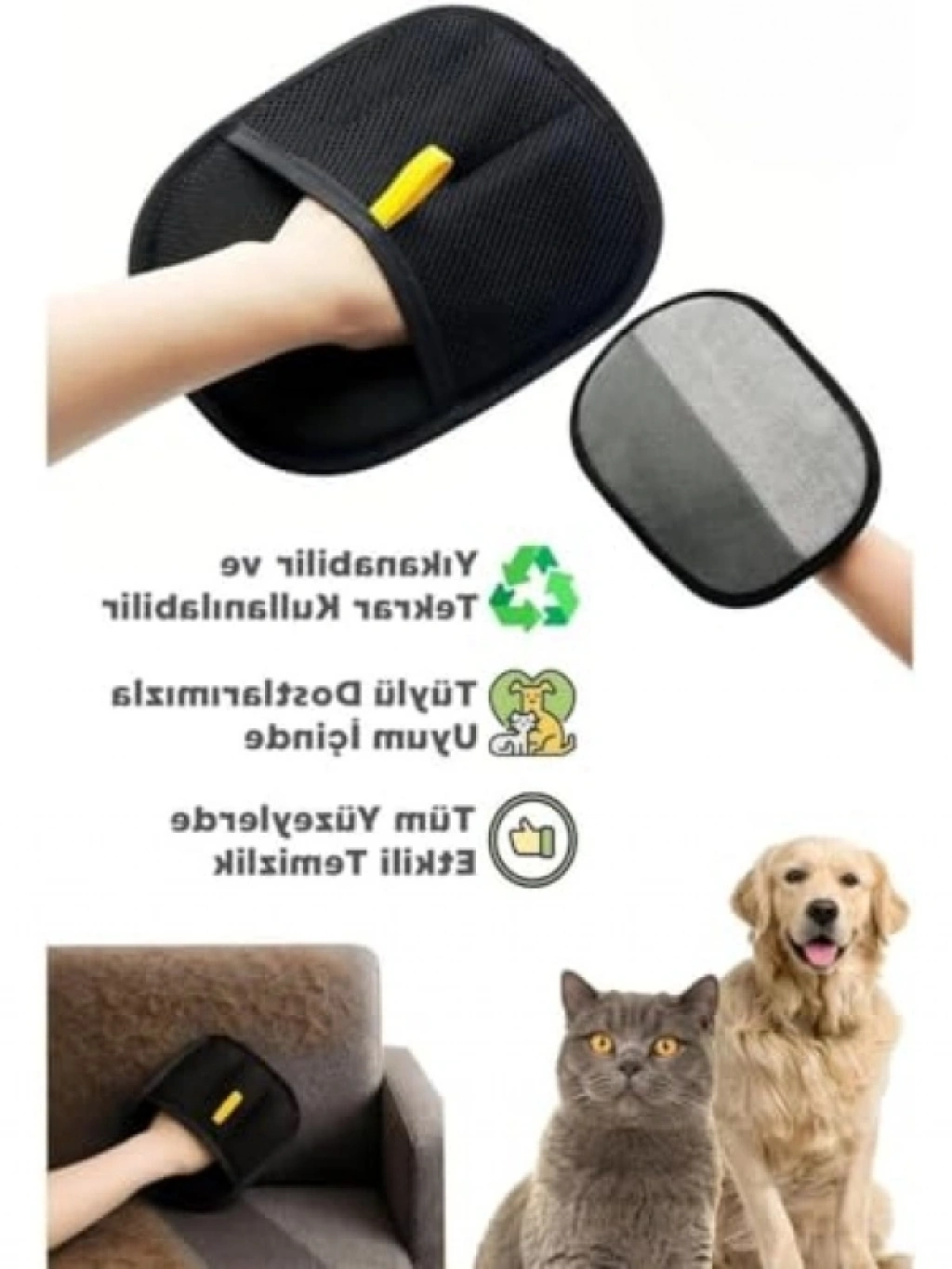 Kedi ve köpek tüylerini kolayca toplamak için tasarlanmış bu çift taraflı statik temizlik eldiveni, giysi, halı, koltuk ve mobilya gibi yüzeylerde etkili bir şekilde kullanılabilir. Dayanıklı yapısı ve ergonomik tasarımı ile kullanıcı dostu bir deneyim sunar. Temizlik işlemlerinizde hızlı ve pratik bir çözüm arıyorsanız, bu eldiven ideal bir tercihtir.