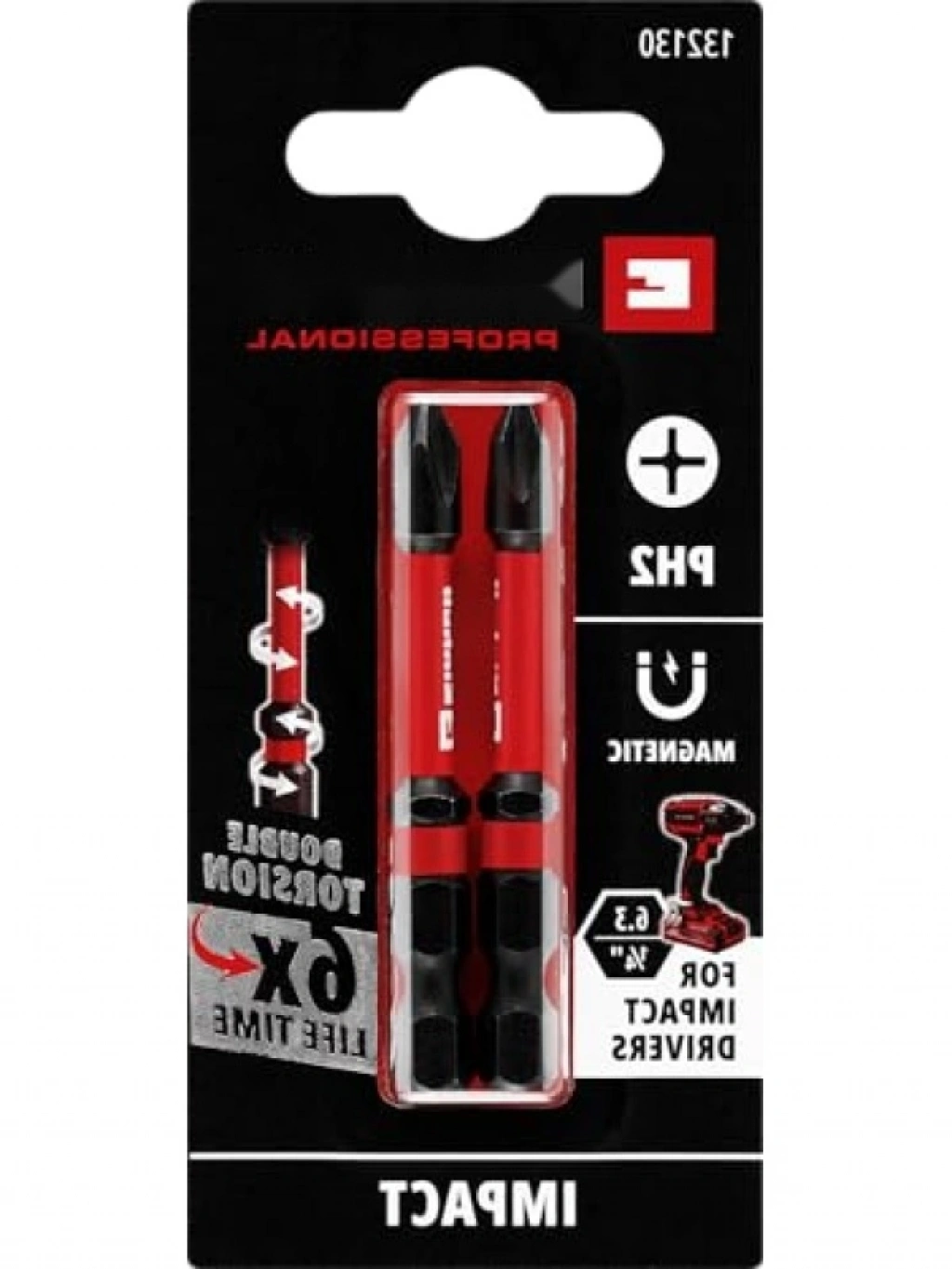 Bu çift torsiyonlu darbeli bit seti, 60 mm uzunluğunda ve PH2 tipindedir. S2 çelikten üretilmiş olan bitler, aşınmaya dayanıklı ve uzun ömürlüdür. Çift torsiyon yapısı, bit üzerindeki kuvvetleri etkili bir şekilde dağıtarak dayanıklılığı artırır. Set, çok yönlü kullanım için iki adet aynı bit içerir ve 1/4 inç E 6.3 sap yapısı sayesinde tüm standart akülü vidalama makineleri ve matkaplarla uyumludur. Zorlu projelerde güvenilir bir performans sunar.