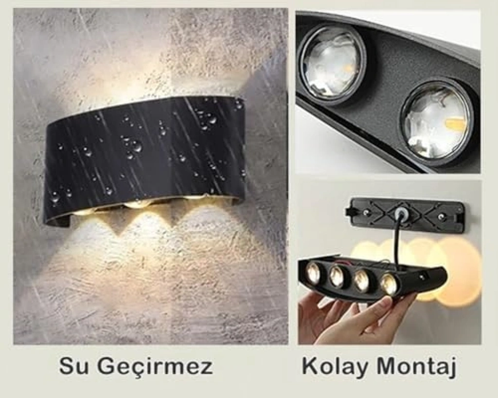Çift yönlü duvar aydınlatma, modern bir görünüm sunarak yukarı ve aşağı ışık efektleriyle şıklığı artırır. Ürün, yüksek kaliteli plastik malzemeden üretilmiştir ve su geçirmez tasarımıyla geniş uygulama alanlarına sahiptir.