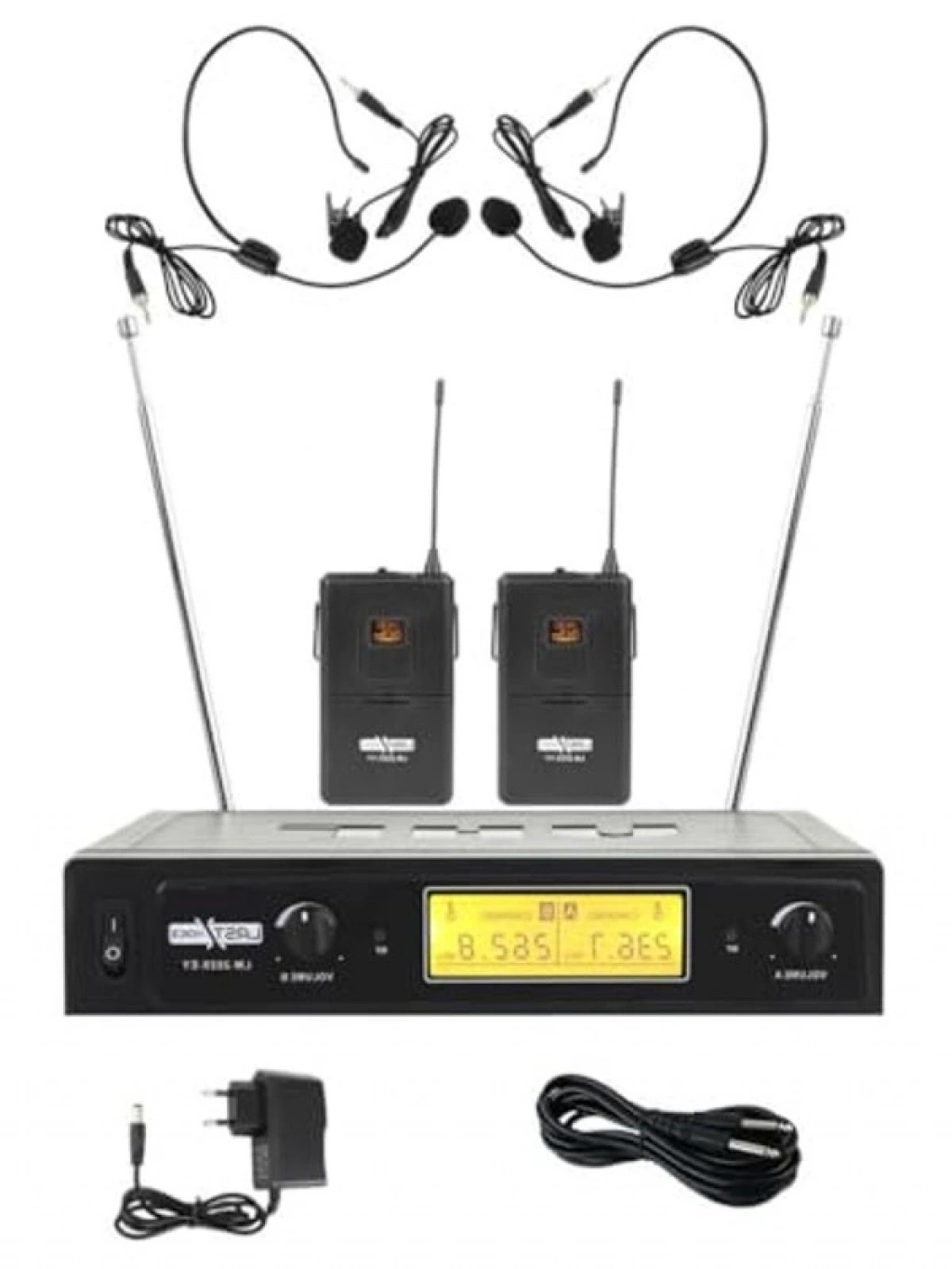 Çiftli kafa kablosuz headset mikrofon, telsiz kullanımına uygun tasarımıyla dikkat çeker. Ergonomik yapısı ve hafif plastik malzemesi sayesinde uzun süreli kullanımlarda konfor sağlar. Bu mikrofon, hem sahne performansları hem de günlük kullanım için idealdir.