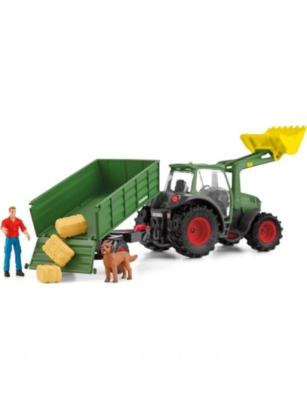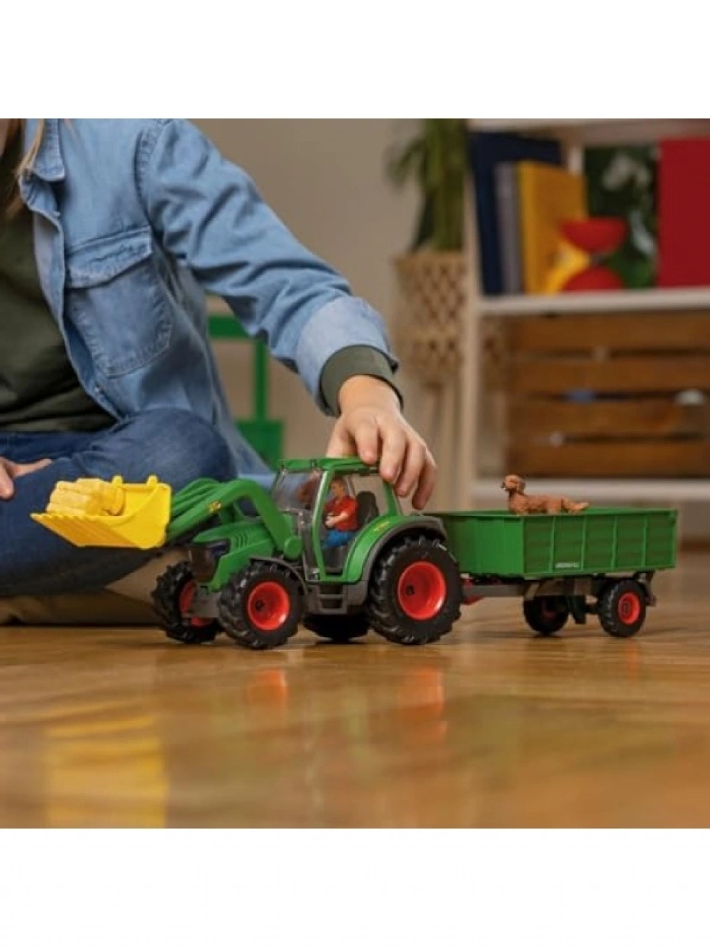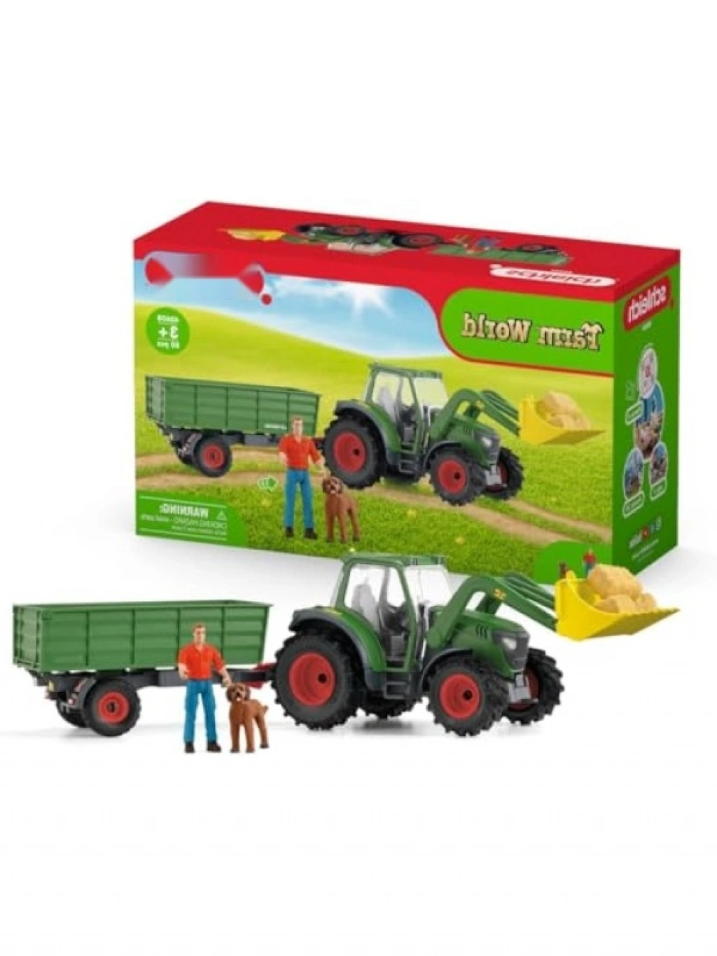 Çiftlik hayatını keşfetmek için tasarlanmış kepçeli traktör seti, çocukların hayal gücünü geliştirmek için mükemmel bir araçtır. Traktör ve yükleme treyini içeren bu set, saman balyalarını taşımak için idealdir. Eğilebilen treyinin arkasındaki açılabilen kapak sayesinde balyalar kolayca yüklenip boşaltılabilir. Set, hareketli çiftçi figürü ve köpek figürü ile daha da zenginleştirilmiştir.