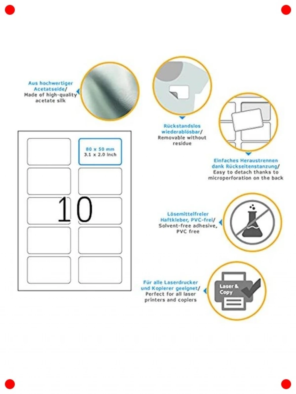 Bu çıkarılabilir isim etiketleri, profesyonel etkinliklerden kişisel organizasyonlara kadar geniş bir kullanım alanı sunar. 80 x 50 mm boyutlarındaki etiketler, net ve okunur bir yazı alanı sağlar. Kendinden yapışkanlı yapısı sayesinde kolayca uygulanır ve en önemlisi, çıkarıldığında yüzeyde hiçbir yapışkan kalıntısı bırakmaz. Yazdırılabilir özelliği sayesinde lazer veya mürekkep püskürtmeli yazıcılarla kişiselleştirilebilir, böylece tek tek yazma zahmetinden kurtulursunuz. Paket içerisinde 100 adet etiket bulunur (10 yaprak, her yaprakta 10 adet). Toplantılar, seminerler, okul projeleri ve eşyaları düzenlemek için pratik ve etkili bir çözümdür.