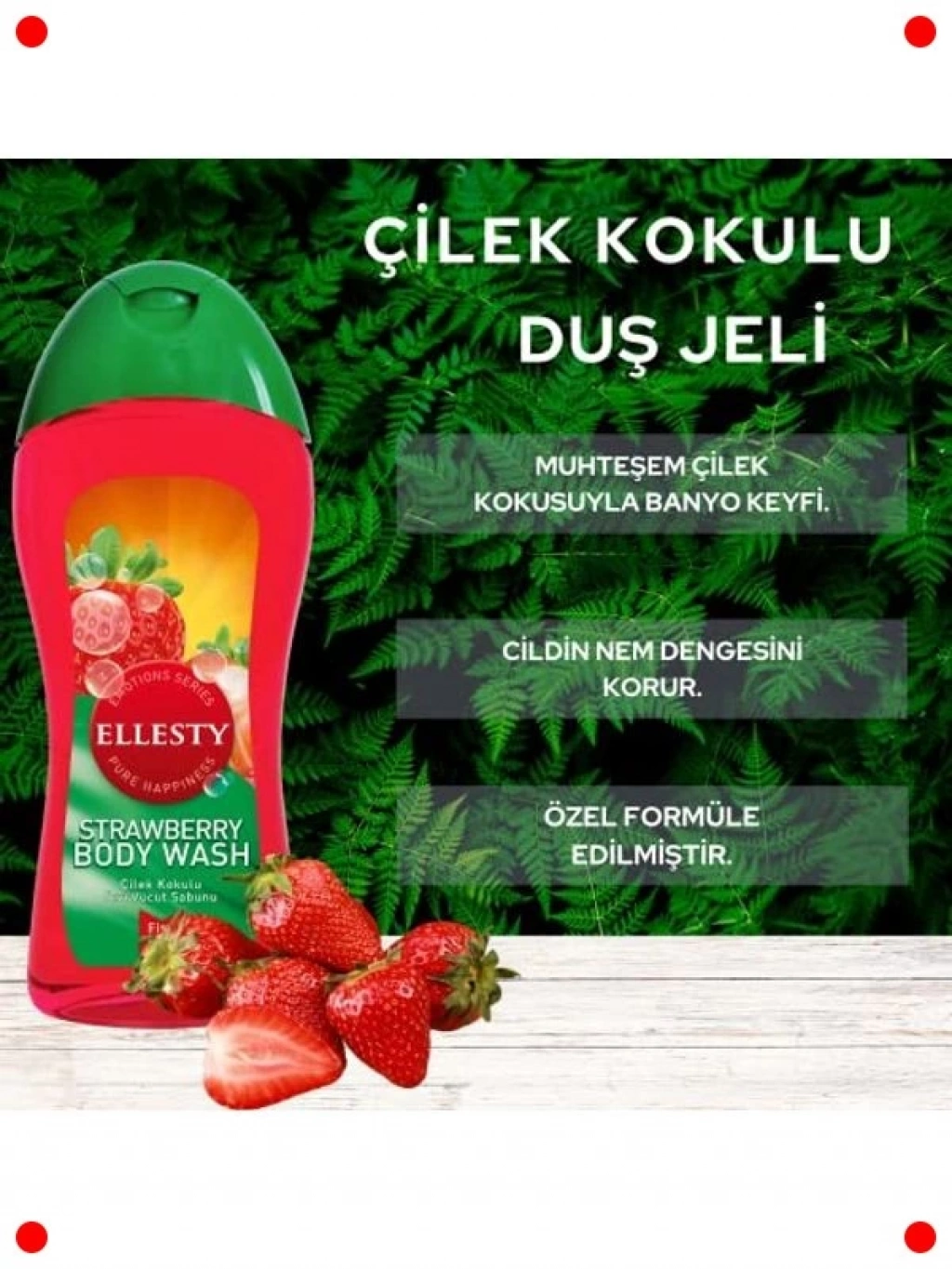 Günün yorgunluğunu atmak ve duş deneyiminizi canlandırıcı bir ritüele dönüştürmek için tasarlanmış bu çilek kokulu duş jeli, eşsiz aromasıyla duyularınızı harekete geçirir. Zengin köpük formülü cildinizi nazikçe temizlerken, doğal nem dengesini korumaya yardımcı olur. Cildinize ipeksi bir yumuşaklık ve pürüzsüzlük kazandırır. Duş sonrası cildinizde ferahlatıcı ve uzun süre kalıcı hoş bir çilek kokusu bırakır. 400 ml'lik büyük boy ambalajı ile uzun süreli kullanım sunar ve her duşta keyifli bir kaçış anı yaşatır.