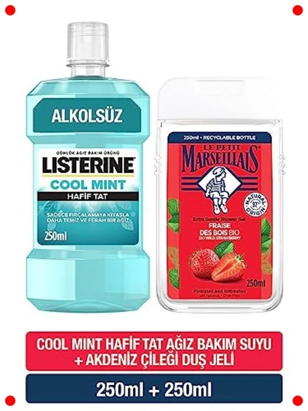 Bu özel kişisel bakım seti, günlük temizlik ve ferahlık rutininizi bir üst seviyeye taşır. Akdeniz çileği aromalı duş jeli ile duyularınızı canlandıran ferahlatıcı bir banyo deneyimi yaşayın. Cildinizi nazikçe temizlerken, mis gibi kokusuyla günün yorgunluğunu üzerinizden atmanıza yardımcı olur ve cildinizde yumuşacık bir his bırakır. Setin ikinci ürünü olan hafif nane aromalı ağız bakım suyu ise ağız hijyeninizi eksiksiz bir şekilde tamamlar. Ağzınızda uzun süreli ferahlık sağlarken, kötü nefese karşı savaşır ve diş eti sağlığını desteklemeye yardımcı olur. Bu ikili, hem cildiniz hem de ağız sağlığınız için etkili ve hoş bir bakım çözümü sunarak gün boyu kendinizi temiz ve güvende hissetmenizi sağlar.