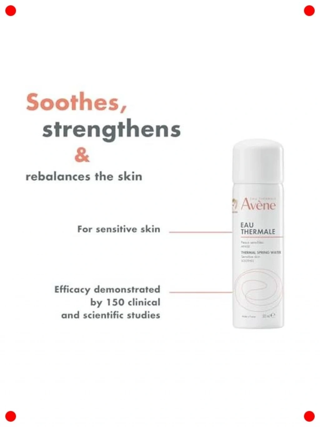 Mineral açısından zengin bu termal su spreyi, cildinizi anında ferahlatır, yatıştırır ve rahatlatır. Hassas, tahriş olmuş veya kızarık ciltler için özel olarak formüle edilmiştir. Cildin doğal dengesini geri kazandırmaya yardımcı olur, çevresel faktörlere karşı koruma sağlar. Makyaj öncesi cildi hazırlamak, makyaj sonrası sabitlemek veya gün içinde cildi canlandırmak için kullanılabilir. Bebek cildinden yetişkinlere kadar herkes için uygun olan bu sprey, cildinize anında bir tazelik ve konfor hissi verir. Küçük boyutu sayesinde her an yanınızda taşıyabilirsiniz.