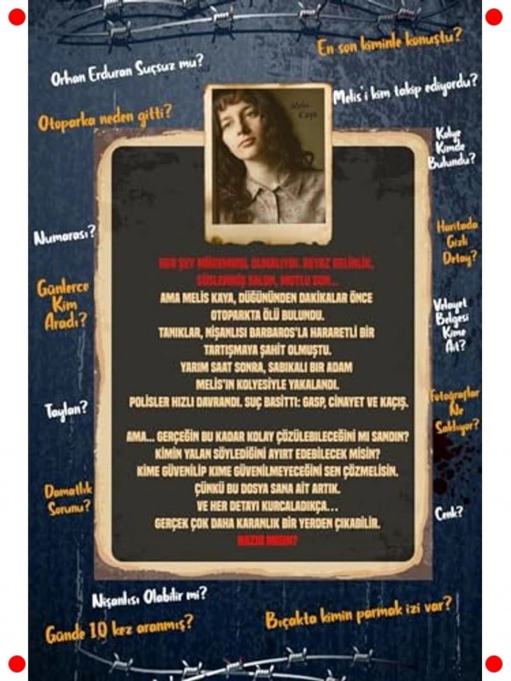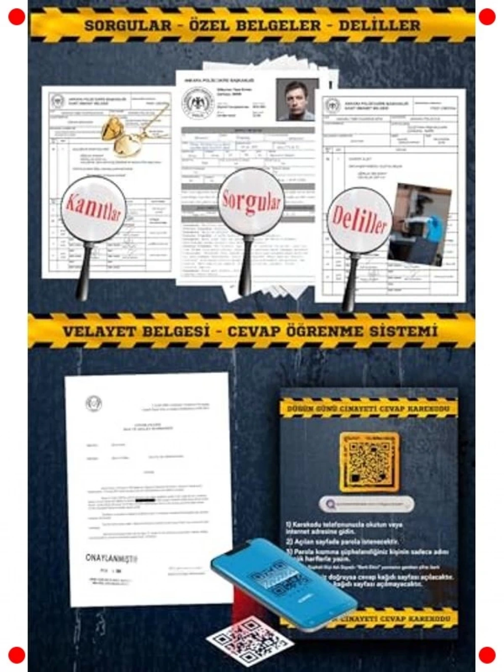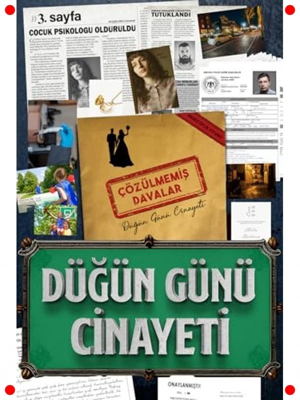 Dedektiflik becerilerinizi test edecek bu sürükleyici cinayet gizemi oyununda, Düğün Günü Cinayeti Dosyasını çözmeye hazır olun! Bir cinayet masası dedektifi gibi ipuçlarını, şüpheli ifadelerini ve kanıtları inceleyerek gerçek katili bulmanız gerekiyor. Her bir belge, fotoğraf ve rapor, sizi davayı aydınlatmaya bir adım daha yaklaştıracak. Arkadaşlarınızla veya ailenizle bir araya gelerek oynayabileceğiniz bu kutu oyunu, eleştirel düşünme, mantık yürütme ve problem çözme yeteneklerinizi zorlayacak. Gizemli atmosferi ve sürükleyici senaryosuyla sizi olayların içine çeken bu oyun, unutulmaz bir dedektiflik deneyimi sunuyor.