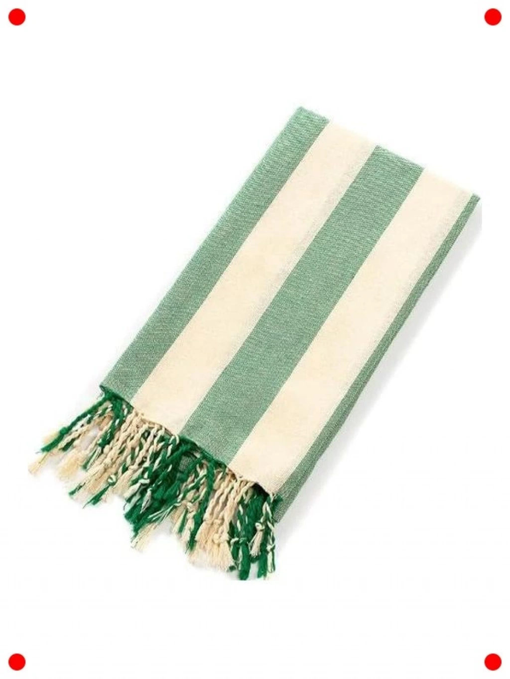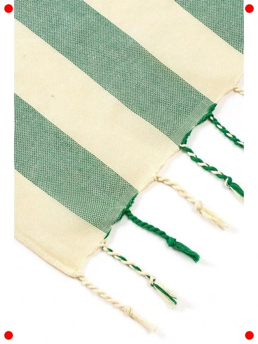 Geleneksel dokuma sanatının modern yorumu olan bu çizgili peştemal havlu ile konfor ve şıklığı bir arada yaşayın. Hızlı kuruyan ve yüksek emiciliğe sahip pamuklu yapısıyla banyo sonrası ve plaj kullanımı için idealdir. Yeşil rengi ve zarif çizgili deseniyle göz alıcı bir görünüme sahiptir. Hafif ve ince yapısı sayesinde seyahatlerde, spor salonunda veya havuz kenarında kolayca taşınabilir, çantanızda minimum yer kaplar. Cilde dostu doğal malzemelerden üretilmiştir ve her kullanımda size yumuşak bir dokunuş sunar. Hem şık hem de fonksiyonel bir seçimdir.